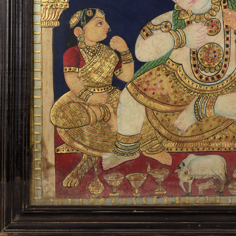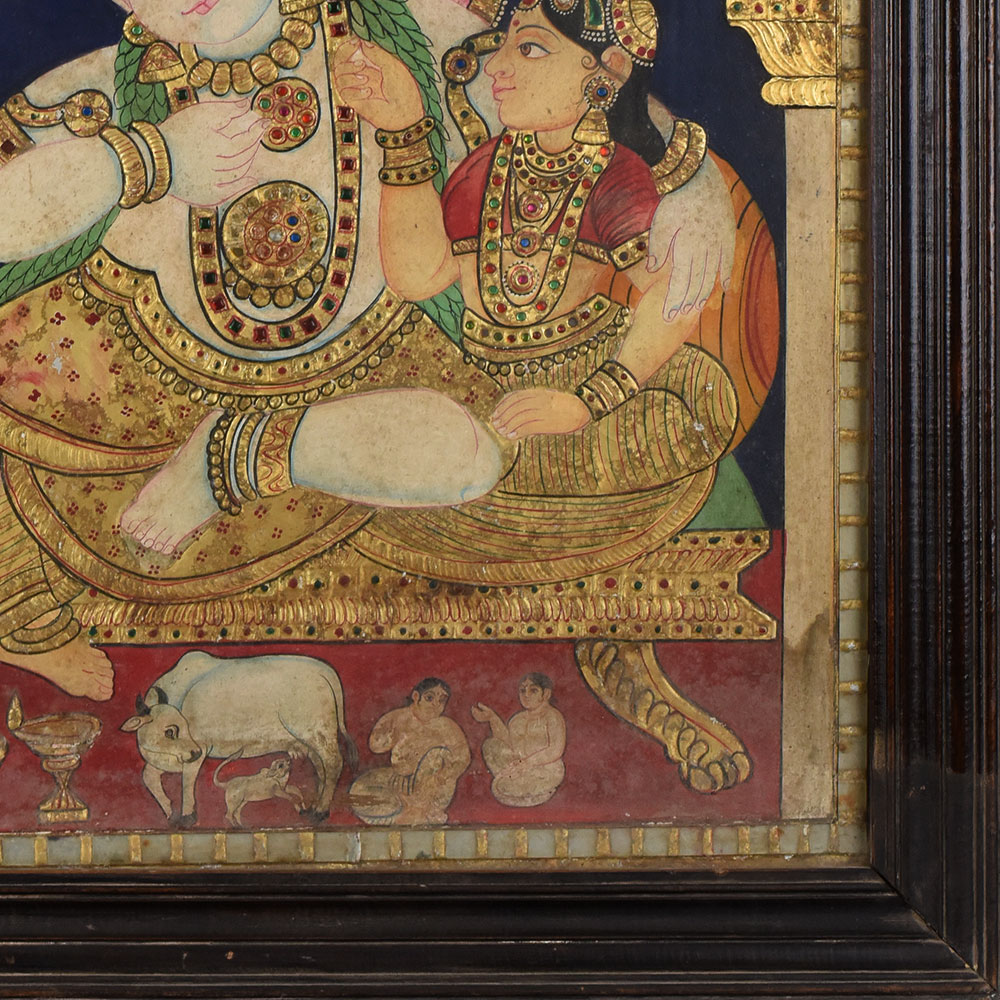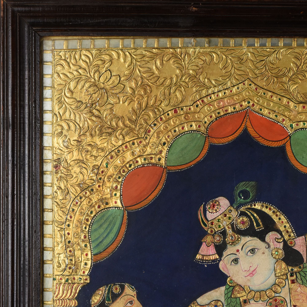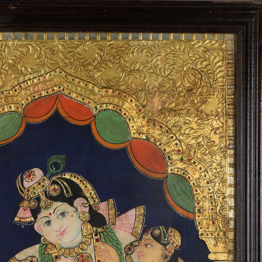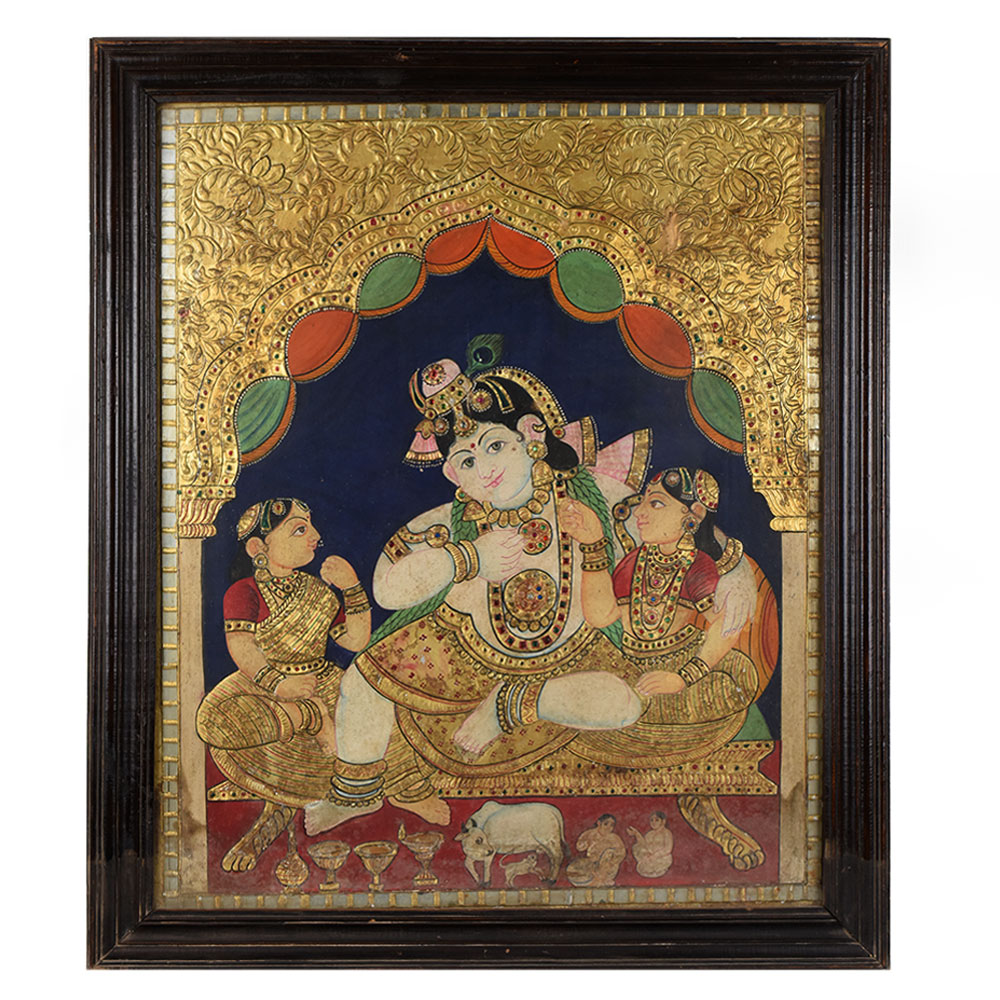 - Traditional Tanjore painting of Lord Krishna with companions.