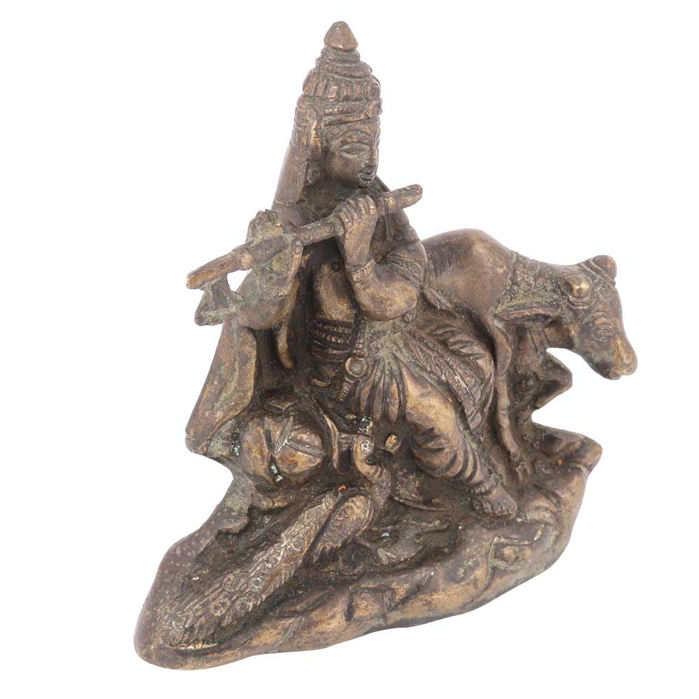Krishna Playing the Flute. The Flute is An Attribute Mainly Associated with Krishna. Behind Venugopal is a Cow Licking the Bottom of His Foot, An Ultimate Sign of Respect and Admiration.