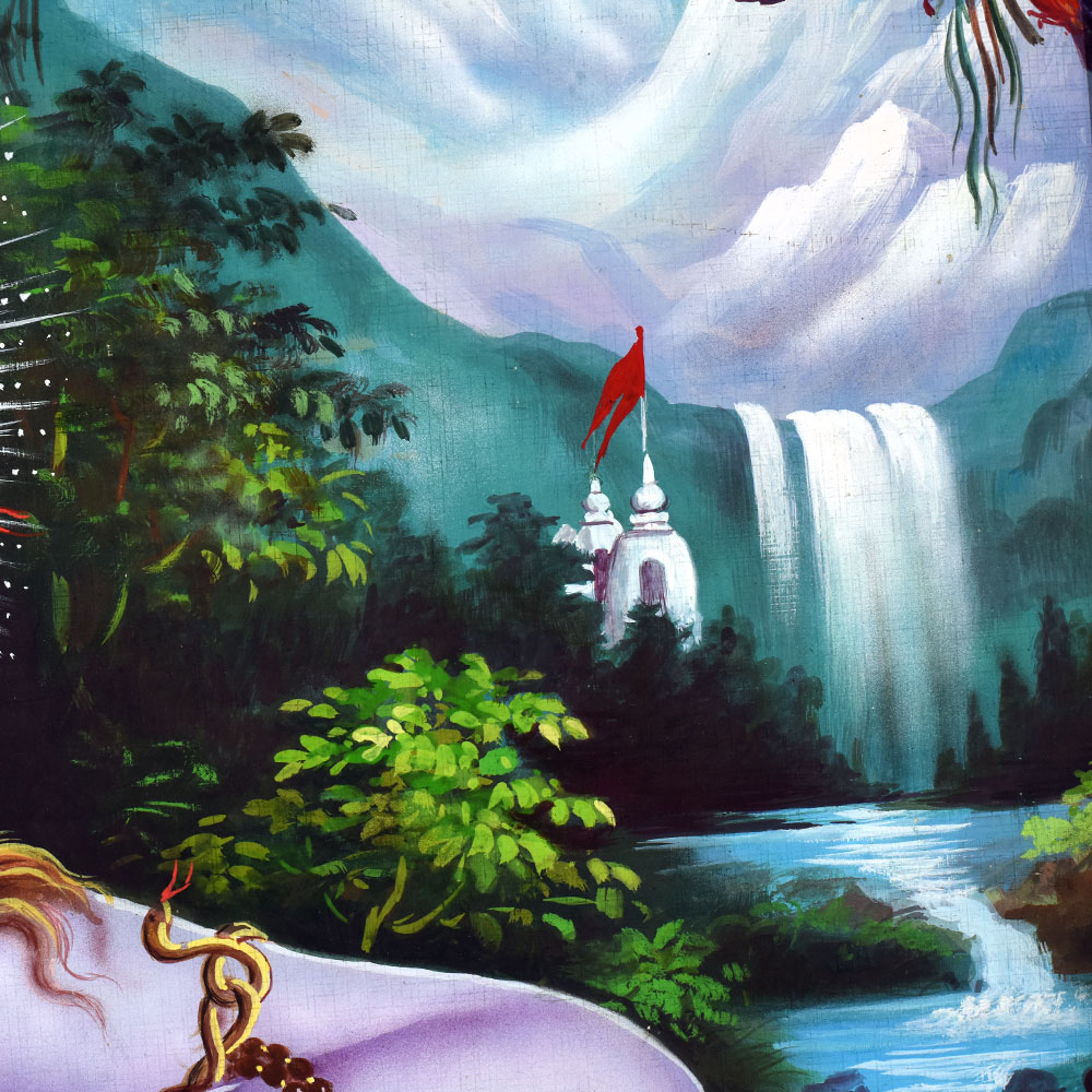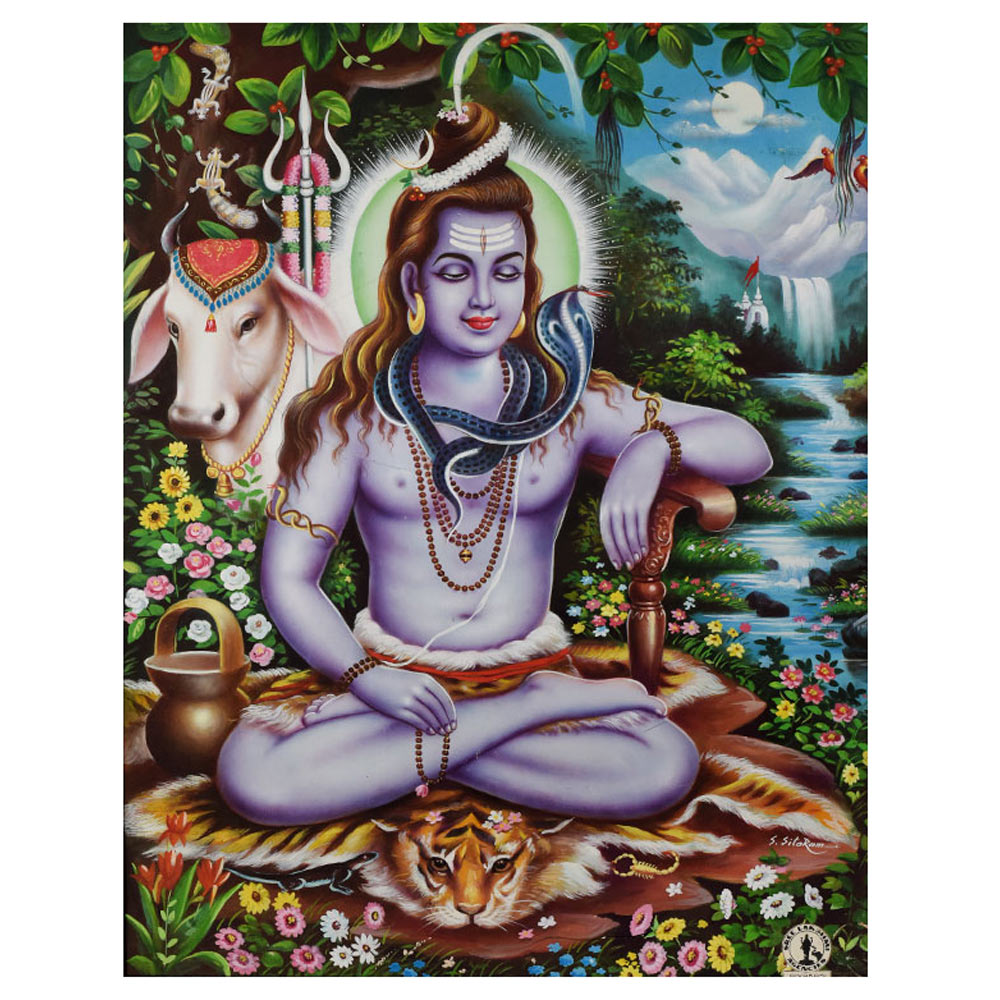 Elevate your living space with the divine presence of Lord Shiva in this stunning calendar art on paper, a masterpiece that transcends the boundaries of time and space. Lord Shiva, the supreme deity in Hinduism, represents the cycle of creation, preservation, and destruction. This calendar art invites you to connect with the transformative energy of the Mahadeva, the "Great God," and let his blessings flow through your life. Gaze upon the mesmerizing depiction of Lord Shiva, adorned with his iconic trident and crescent moon, and allow his timeless wisdom to guide your path. Whether you're seeking a focal point for your meditation practice or a striking addition to your living space, this calendar art on paper will elevate your surroundings and nourish your spiritual well-being. Immerse yourself in the divine presence of Lord Shiva and let his powerful energy inspire you to embrace the ebb and flow of the universe. Transform your living space into a sanctuary of serenity and spiritual growth with this captivating calendar art on paper.