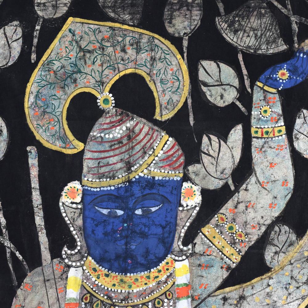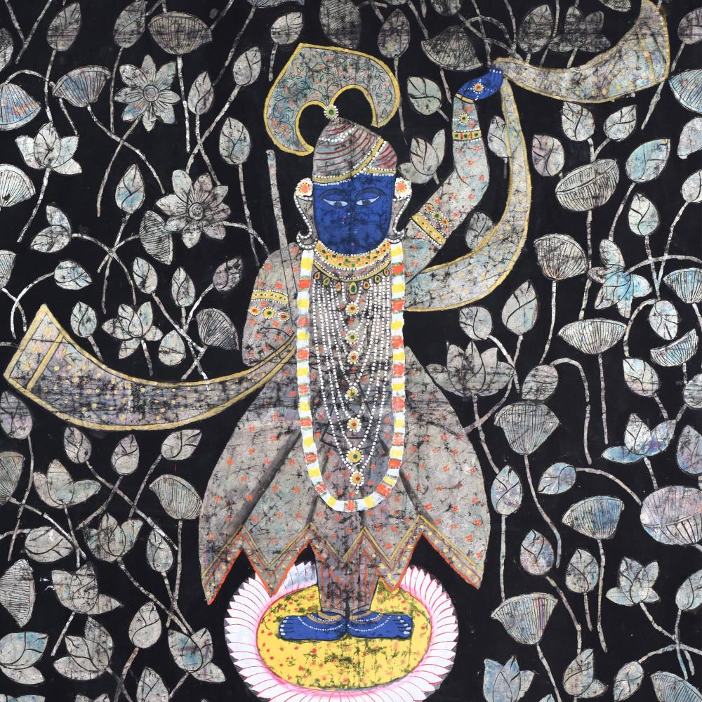 - Exquisitely detailed pichwai painting on high-quality cloth