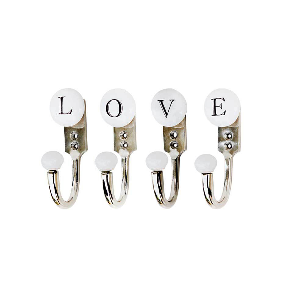 LOVE white and black alphabet hooks (combo pack). When put on wall or cabinet it is an art in itself. This hook is strong enough to hold your keys, tea cups, hand towels, cloths etc.