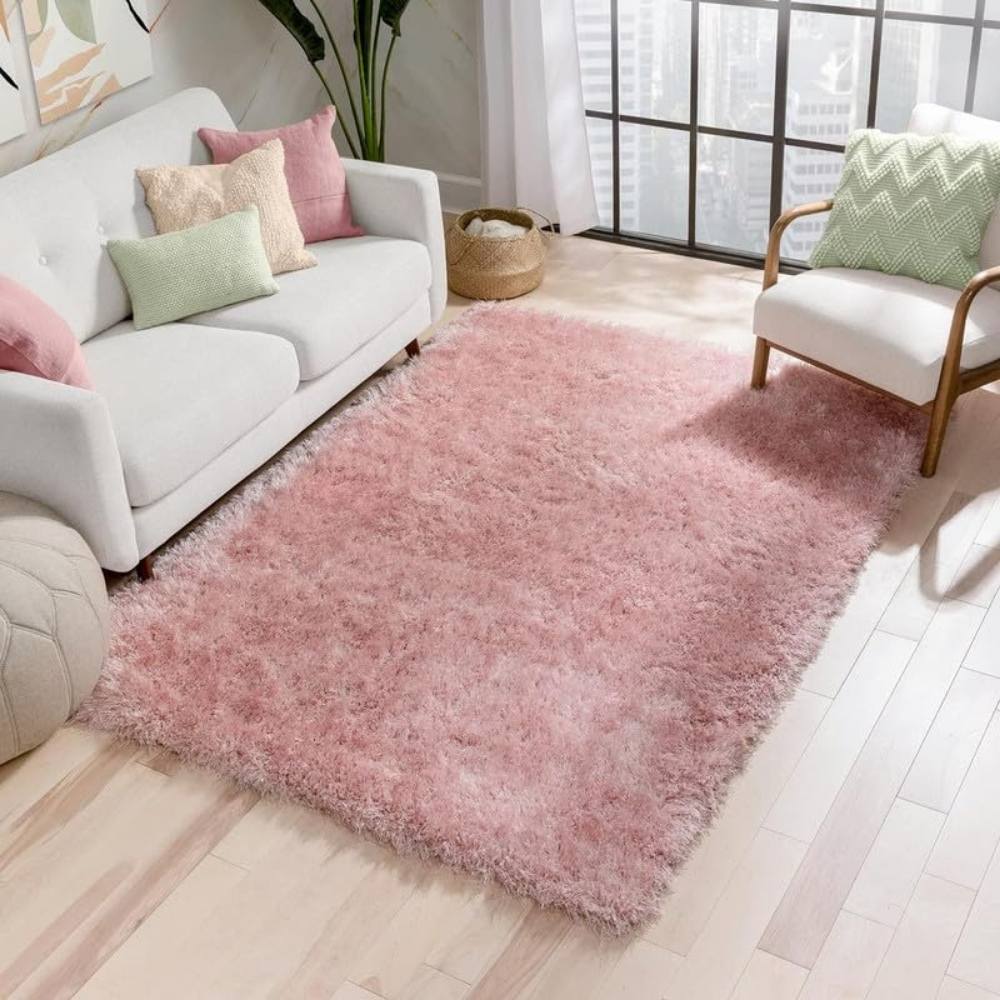 This Peach Pink shaggy rug, crafted from soft polyester, infuses your space with elegance and warmth. Its fluffy texture and pastel hue create a soothing, luxurious feel — perfect for feminine or minimalistic interiors. Every rug is handcrafted, packed, and quality-checked by skilled Indianshelf artisans.