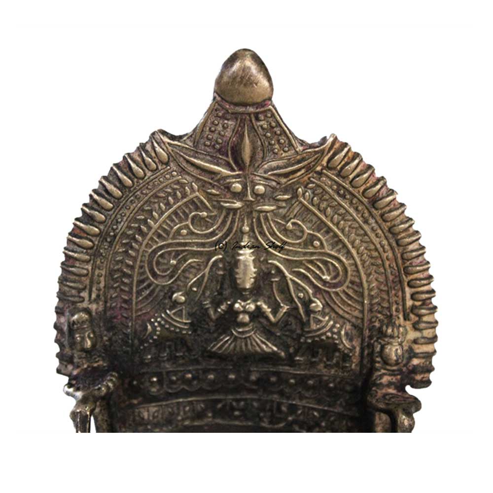 . South India (Kumbakonam, Tamil Nadu) Brass Oil Lamp. An Old Used Oil Lamp. It is Made by Lost Wax Process by Tribal Craftsmen. It Depicts Goddess Maha Lakshmi. Adds Spiritual Flavor to You Decor. Vegetable Oil, Mustard Oil or Desi Ghee can be Use to Light the Lamp with Cotton Wicks.