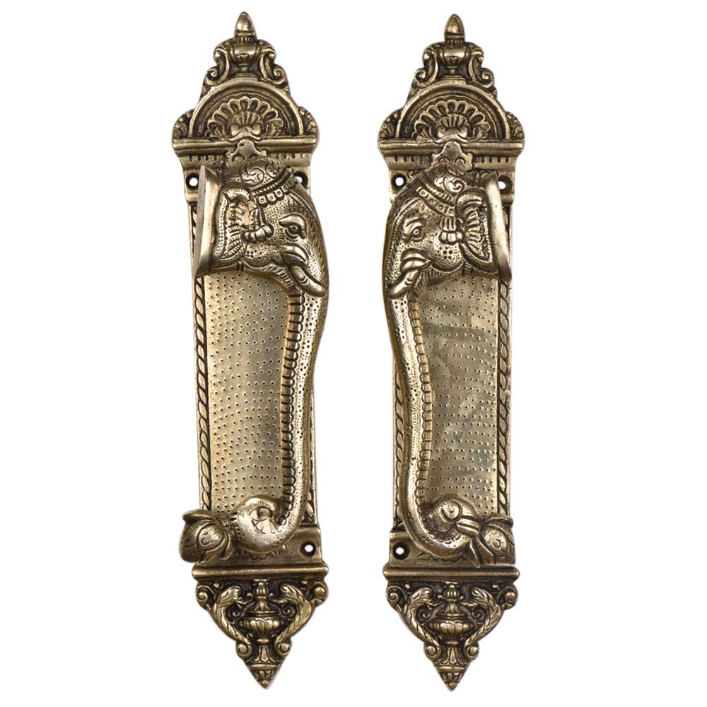 Constructed from solid brass, this door handle is built to last. Brass is known for its durability, resistance to corrosion, and timeless aesthetic, making it the perfect material for a handle that will see frequent use. With its robust build, the Majestic Brass Door Handle with Elephant Head and Engraved Design offers long-lasting performance while adding a touch of grandeur to your home.