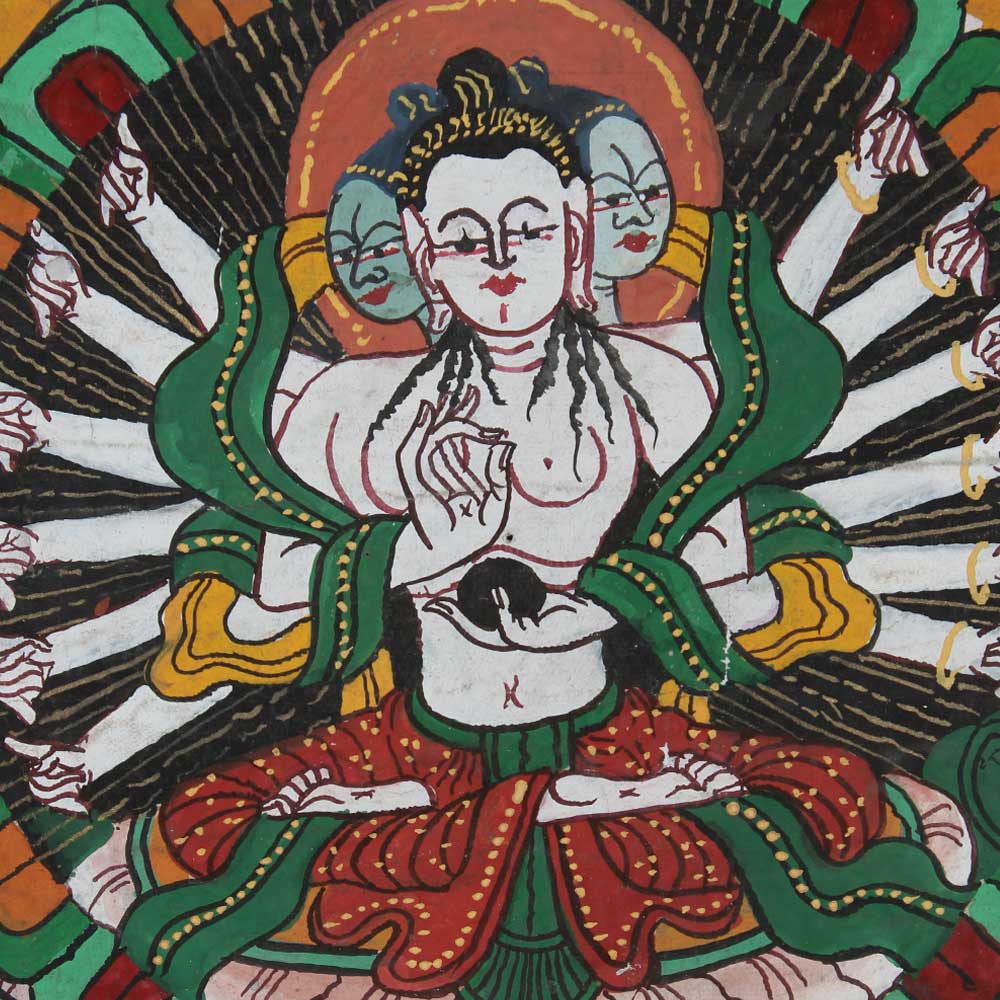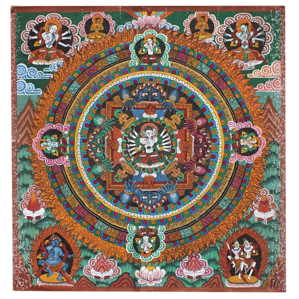 The Thangka painting tradition is distinguished by a distinct style that is both strange and wonderful. There is a significant message behind each image of Buddhas, Bodhisattvas, Mythical creatures, scary Dharmapalas, mythological animals, Gurus, and elaborate Mandalas.