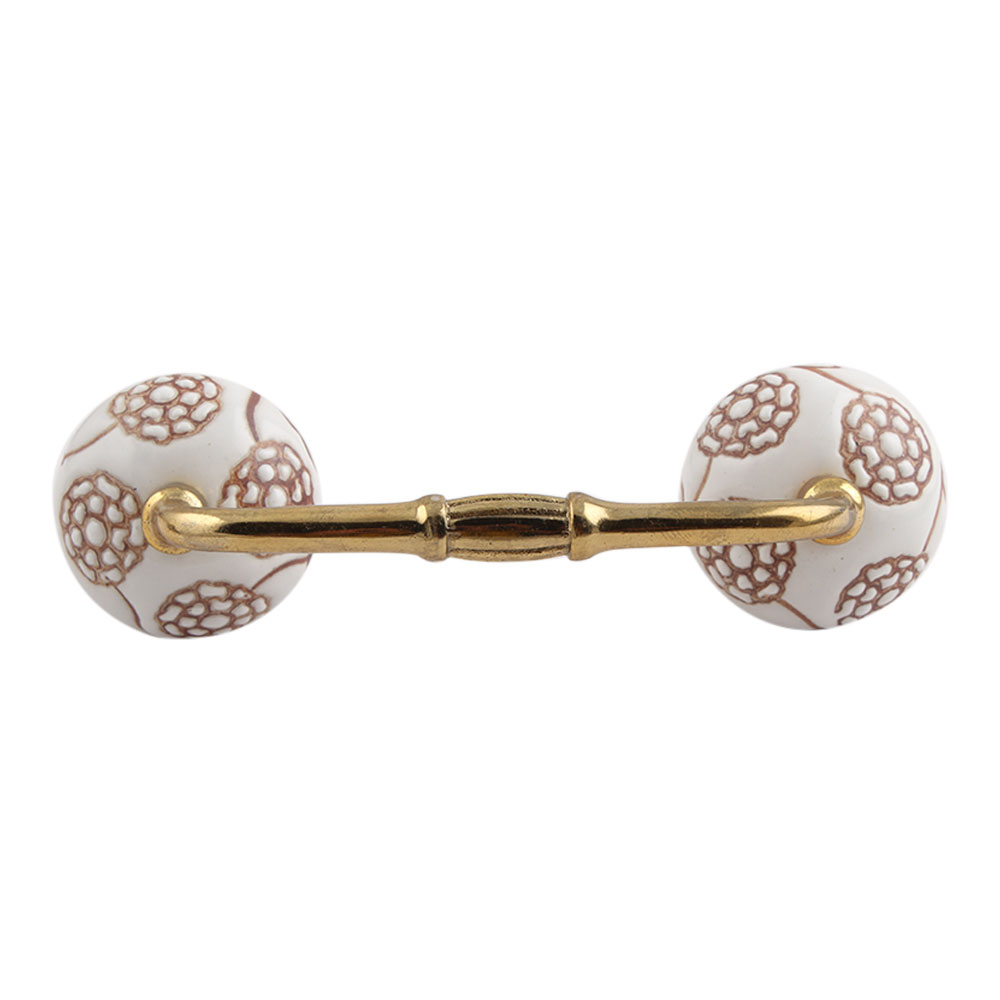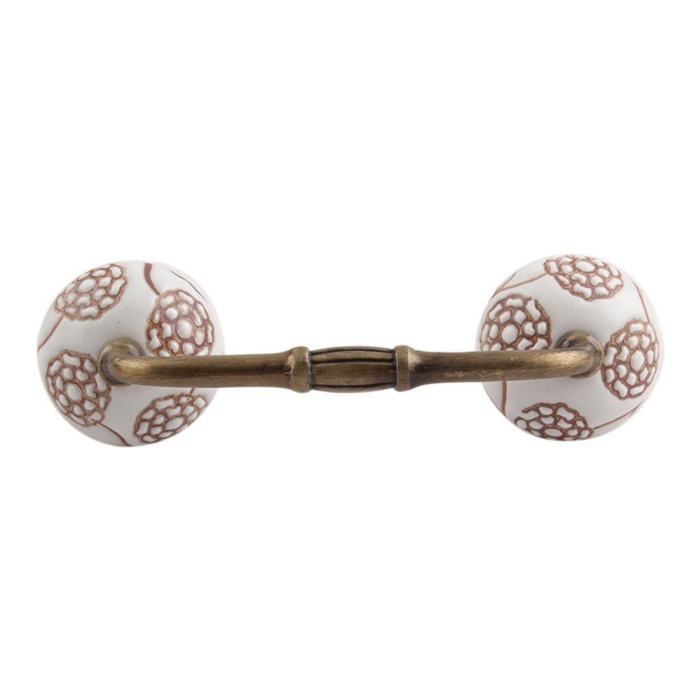 Marigold Brown Etched Ceramic Floral Bridge Handle. Ideal for Drawer, Dresser, Cabinet, Wardrobe, Cupboard and Almirah.