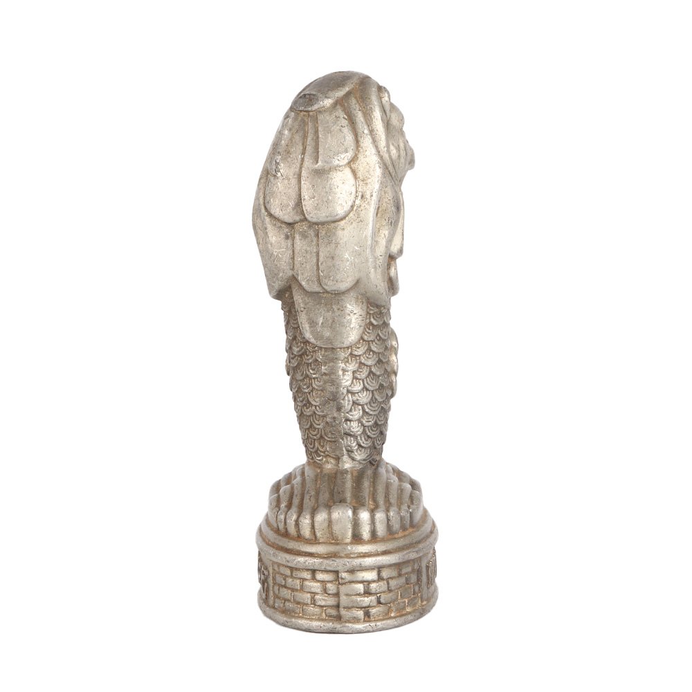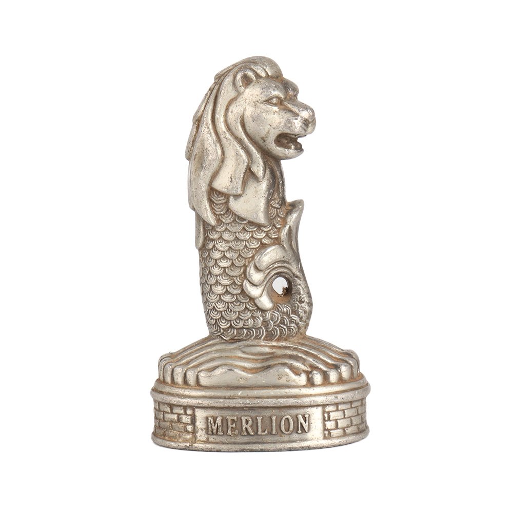 This small Merlion Singapore Lion paperweight is a unique and beautiful addition to any desk or table top. Designed in Singapore art, it features a lion face with a mermaid body that is sure to catch the eye of anyone who sees it. Made of white metal, this paperweight is sturdy and durable, perfect for holding down important papers or documents at office. Its compact size makes it ideal for collectors who appreciate fine art, and it's sure to stand out among other paperweights. The intricate detailing and skilled craftsmanship of this lion paperweight are a testament to its quality and beauty. If you're looking for a stylish and unusual paperweight, this lion with a mermaid body is the perfect choice for gifting and collection.