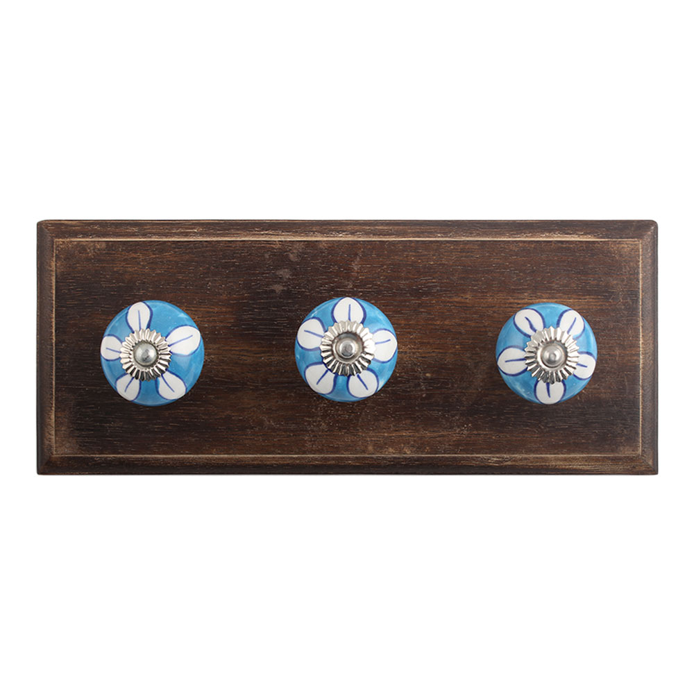Mexican Heather Flower Ceramic Wooden Hook. A Perfect Complement to the Soft Tone of the Wood are these White Traditional Hat & Coat Hook Made of Genuine Porcelain and Brass. It can be use to Hang Jewellery, Leashes, Towels, Scarves, Light Weight Sweaters, Caps Etc.