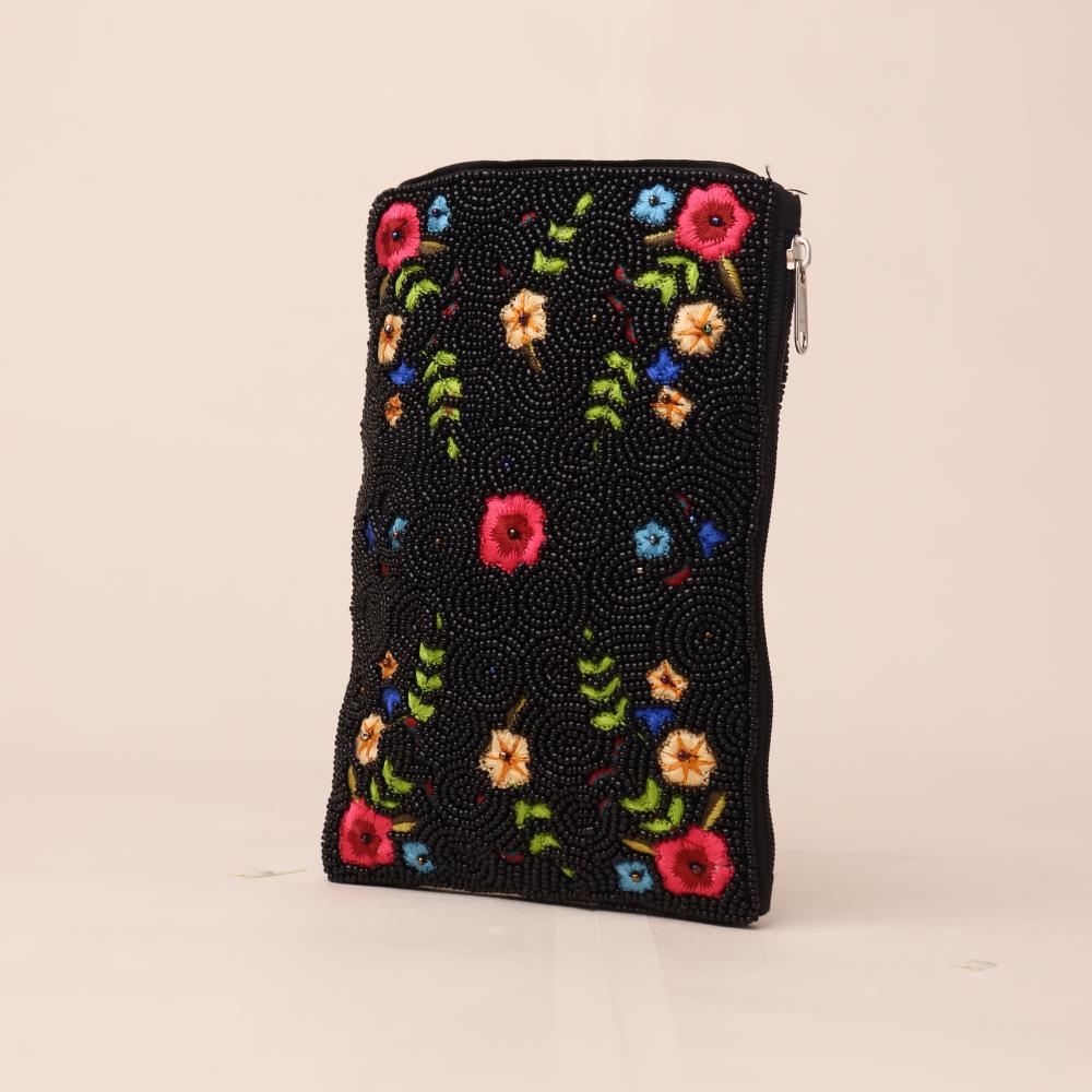 Celebrate timeless elegance with the Midnight Bloom Clutch — a stunning hand-beaded accessory adorned with intricate floral motifs on a classic dark backdrop. The delicate embroidery and swirling beadwork add a romantic charm to your evening attire. Whether held as a clutch or worn with the sleek detachable chain strap, this piece is designed to elevate your style effortlessly.