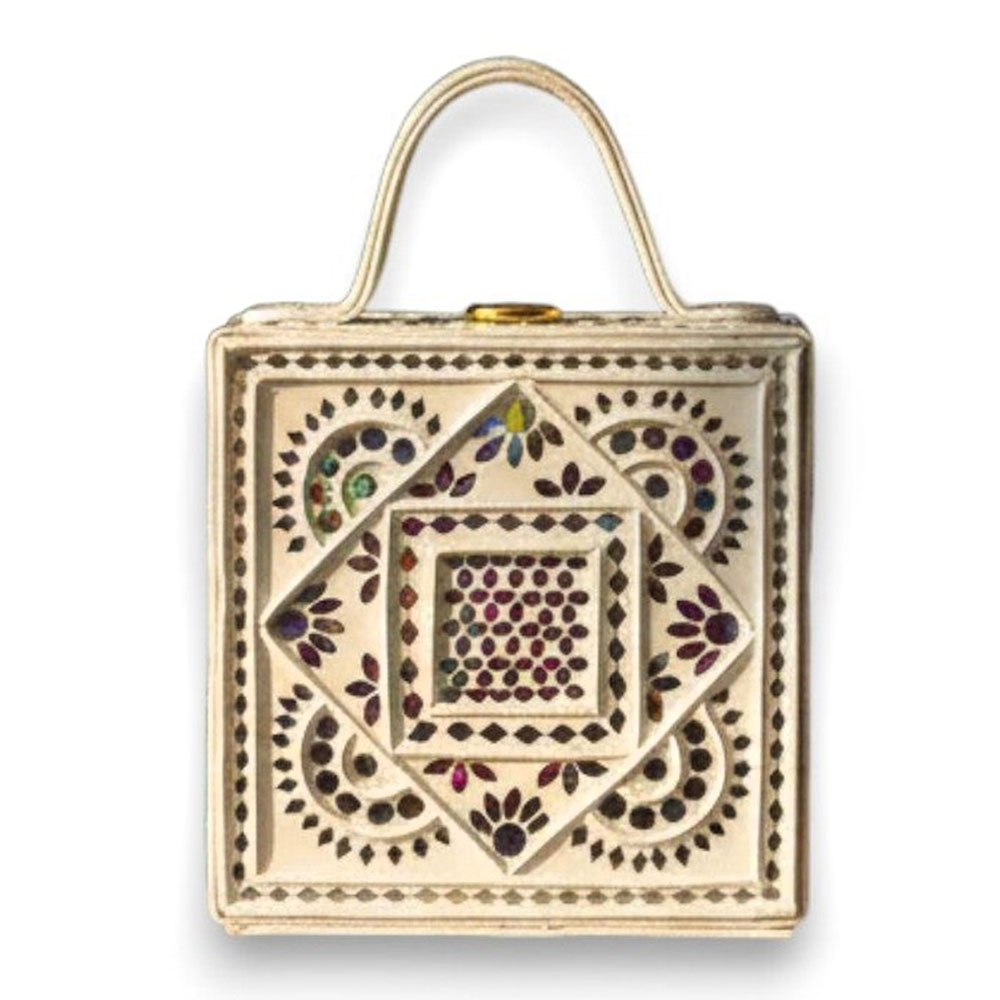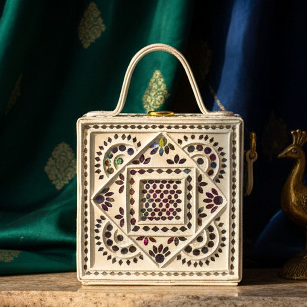 This mini sling box bag showcases mandala inspired Lippan art that blends tradition with modern style. Its compact box form and mirrored details make it appealing to collectors decorators and gifters alike. Each piece is handcrafted by skilled artisans and packed and quality checked by Indianshelf.Mandala Harmony HighlightsThis charming piece features mandala motifs in fine Lippan art appealing to those who love unique cultural accessories and those seeking meaningful gifts.Intricate mandala patterns are hand formed using Lippan art and mirrors.Entirely handmade and never machine madeA strong structure offers long term use and many styling options.Material and Dimension Overview Origin: India. Safely packed and quality checked by Indianshelf Lightweight and compact for hassle free wear.Functional InspirationUse as a unique accessory at home or out to showcase the mandala motif.Gift this mandala themed bag for festivals birthdays or special celebrations.Enhance boutique displays with its artisanal mandala design to attract customers.Event planners and collectors can use it as an eye catching cultural accent piece.Preserving the BagCare for the mandala design by storing the bag dry and cleaning it gently. Use a soft cloth and avoid solvents to keep the intricate Lippan art intact.FAQHow is the mandala pattern created?The mandala is carefully hand crafted with Lippan art using tiny mirrors and traditional motifs.Is this mini bag good for day to day use?Yes its robust build makes it suitable for regular wear.What capacity does it offer?It can hold small essentials like cash cards and lip balm.Is the strap length customisable?The sling strap can be adjusted to your preferred length.Honouring ArtisansEvery piece reflects heritage artistry and careful attention to detail. All our products are handmade never machine made ensuring individuality.