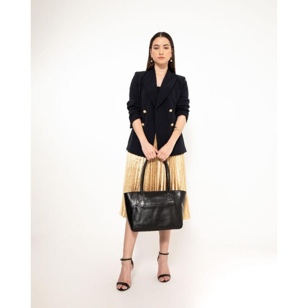 This minimalist, sleek black leather tote embodies minimalist, sleek and leather craftsmanship. Ideal for shoppers seeking distinctive pieces, it offers a statement of style and function. Packed & quality-checked by Indianshelf.