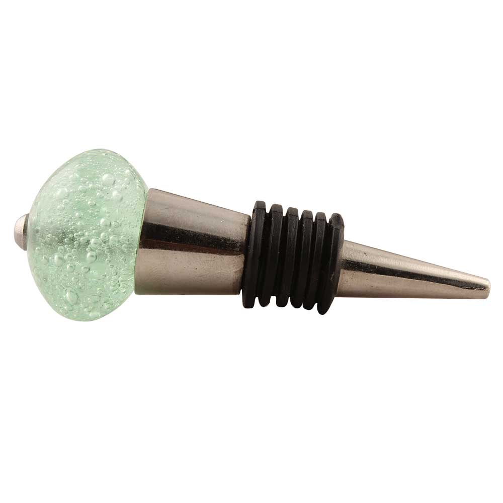 Mint Bubble Glass Wine Stopper. Zinc Alloy Wine Bottle Stopper with Attractive Jute Bag Packaging.