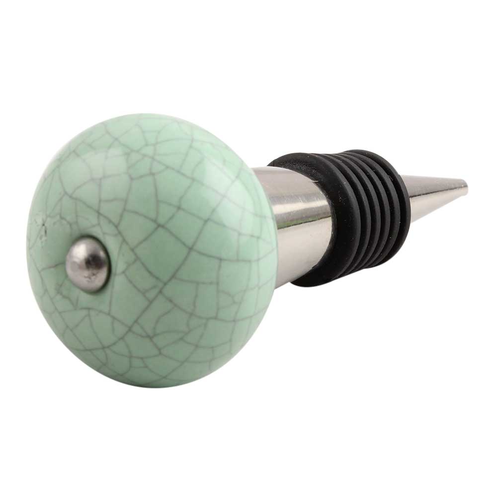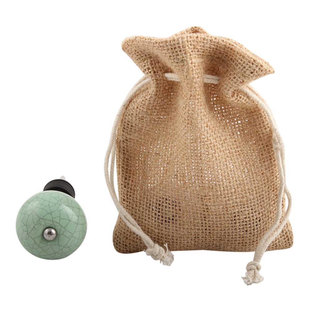 Mint Green Crackle Ceramic Wine Stopper.zinc alloy wine bottle stopper with attractive Jute Bag Packaging.