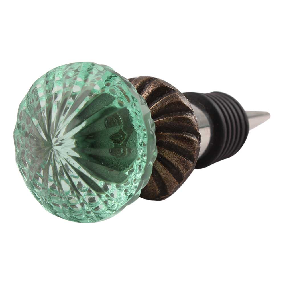 Mint Green Glass Wine Stopper.zinc alloy wine bottle stopper with attractive Jute Bag Packaging.
