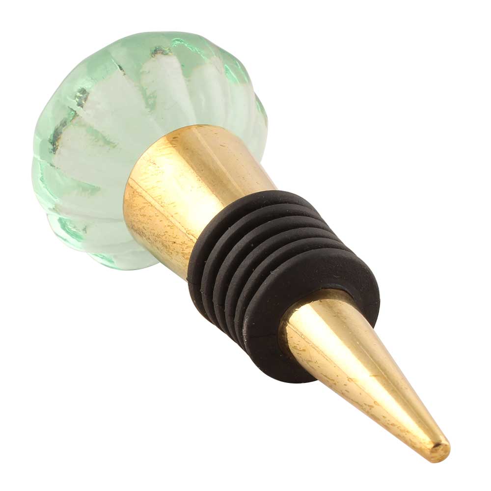 Mint Paneled Sides Glass Wine Stopper in Golden Fitting. Zinc Alloy Wine Bottle Stopper with Attractive Jute Bag Packaging.