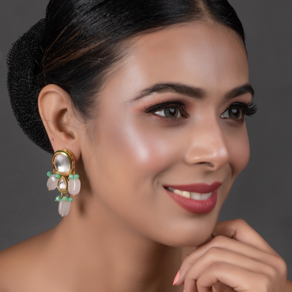Keep your earrings in a dry environment. Avoid exposure to perfumes, chemicals and moisture. Store them separately to prevent tangling and gently clean with a soft cloth after each use to maintain their lustre.