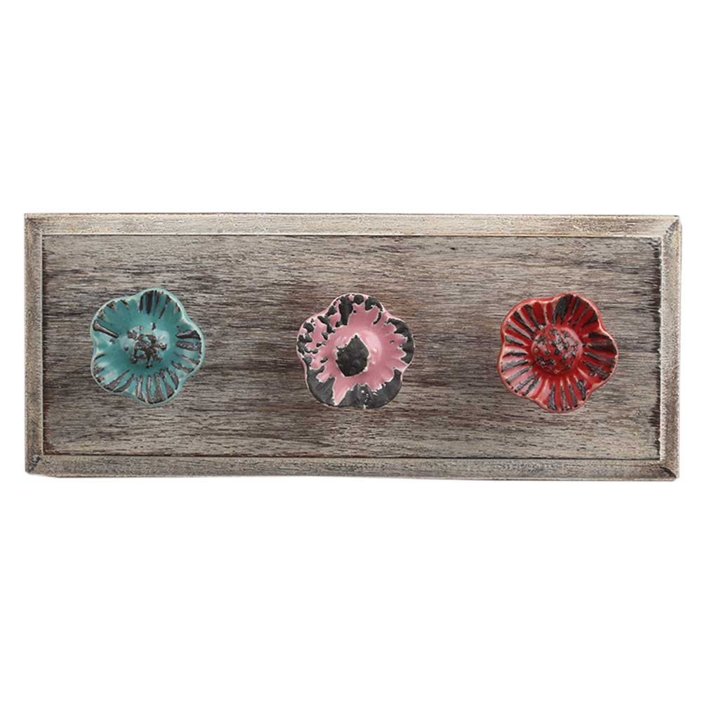 Mix Daffodils Ceramic Etched Wooden Hooks. A Perfect Complement to the Soft Tone of the Wood are these White Traditional Hat Coat Hook Made of Genuine Porcelain and Brass. It can be use to Hang Jewellery, Leashes, Towels, Scarves, Light Weight Sweaters, Caps Etc.