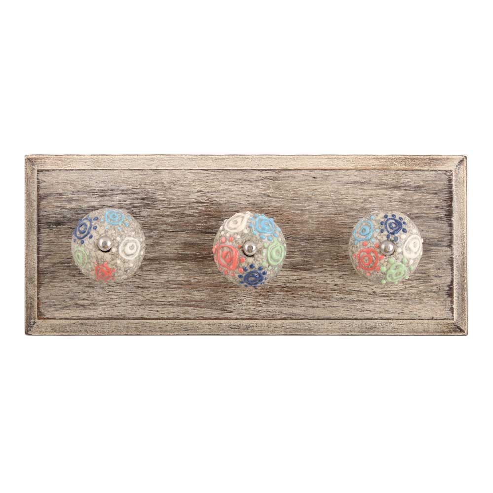 Mixed Circular Crackle Ceramic Wooden Hook. A Perfect Complement to the Soft Tone of the Wood are these White Traditional Hat and Coat Hook Made of Genuine Porcelain and Brass. It can be used to Hang Jewelry, Leashes, Towels, Scarves, Light Weight Sweaters, Caps etc.