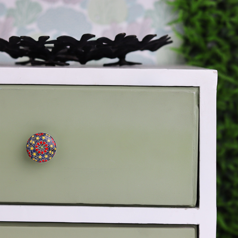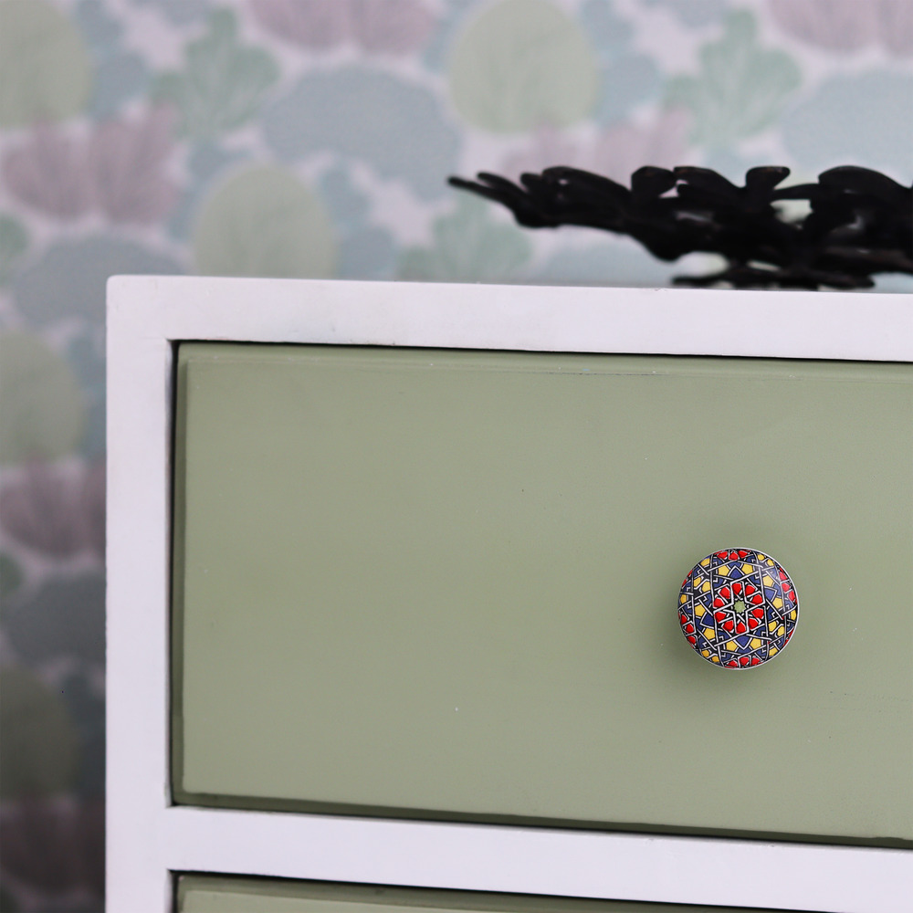 Crafted from sturdy ceramic, this knob is made to last. The vibrant colors remain intact over time, and the knob's smooth surface ensures it stays looking fresh with minimal maintenance.