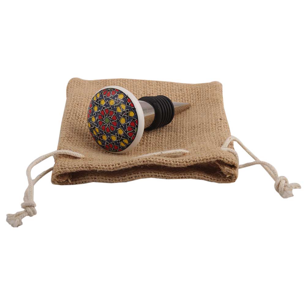 Crafted from high-quality ceramic, this wine stopper features a smooth, flat surface adorned with an array of mixed colors that create a playful yet refined look. The durable ceramic material ensures that it fits securely into most wine bottles, keeping your wine fresh and your barware stylish.