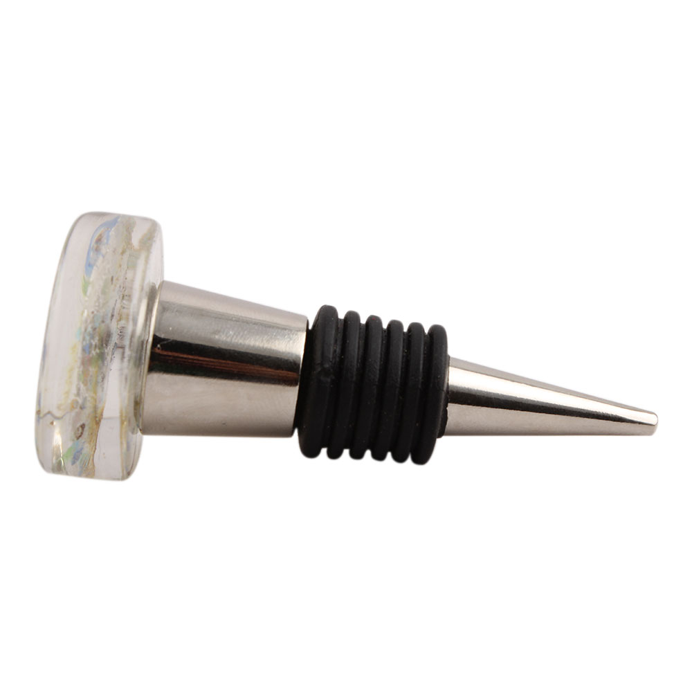 Mixed Color Flat Glass Wine Stopper.zinc alloy wine bottle stopper with attractive Jute Bag Packaging.