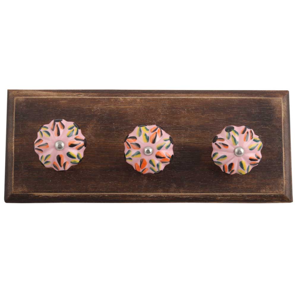 Mixed Color Leaf Ceramic Melon Wooden Hook. A Perfect Complement to the Soft Tone of the Wood are these White Traditional Hat & Coat Hook Made of Genuine Porcelain and Brass. It can be use to Hang Jewellery, Leashes, Towels, Scarves, Light Weight Sweaters, Caps Etc.