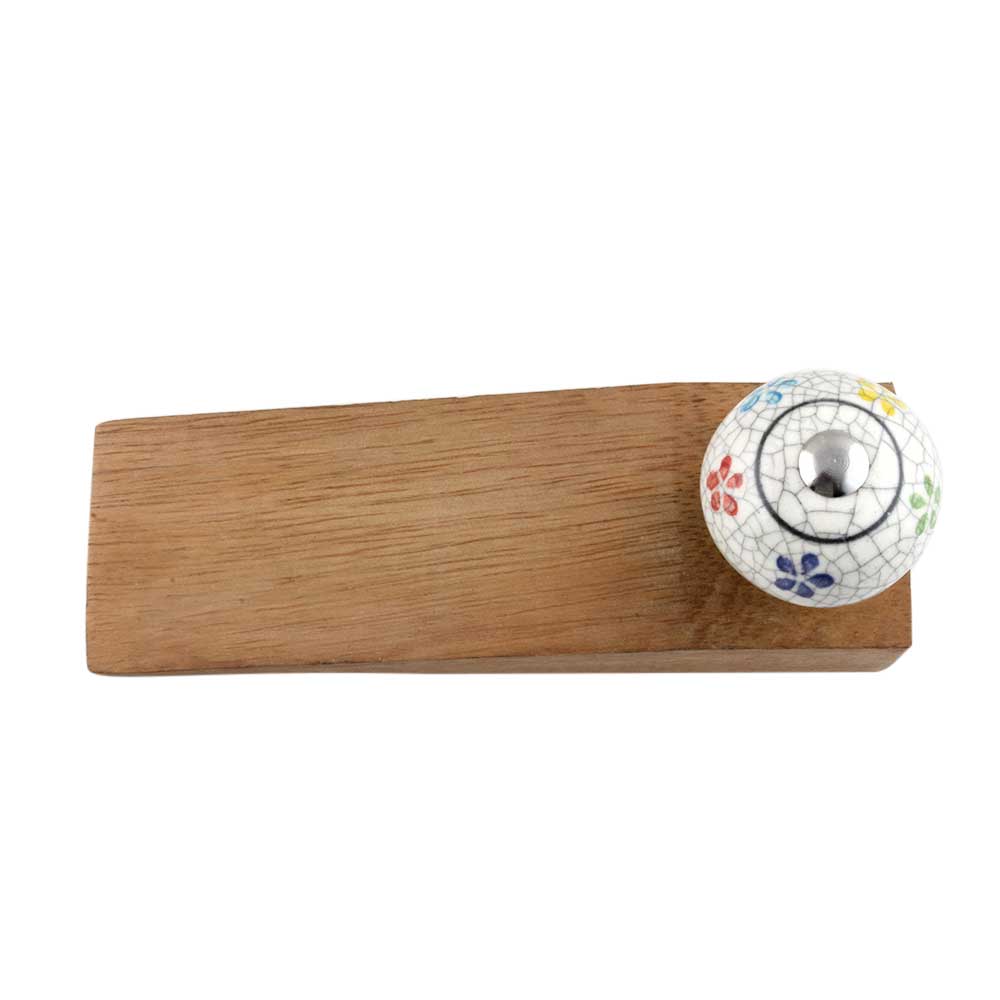 Handmade Ceramic and Wooden Door Stopper.Wooden Door Stopper with a Ceramic Knob to Carry it Easily. This Wooden Door Stopper has Glue Dots under it to Ensure that it does not Slip. It is Handmade by the Craftsmen of India and this Innovative Door Stopper won't Disappoint You.