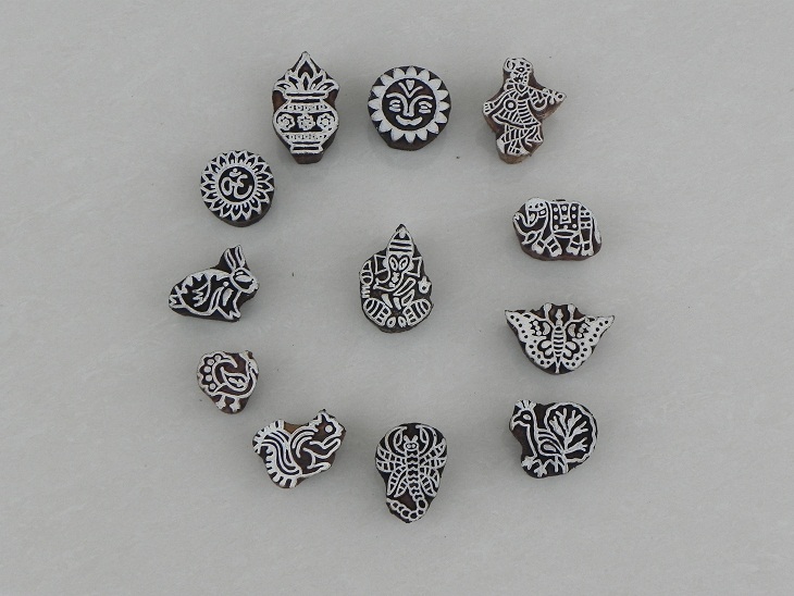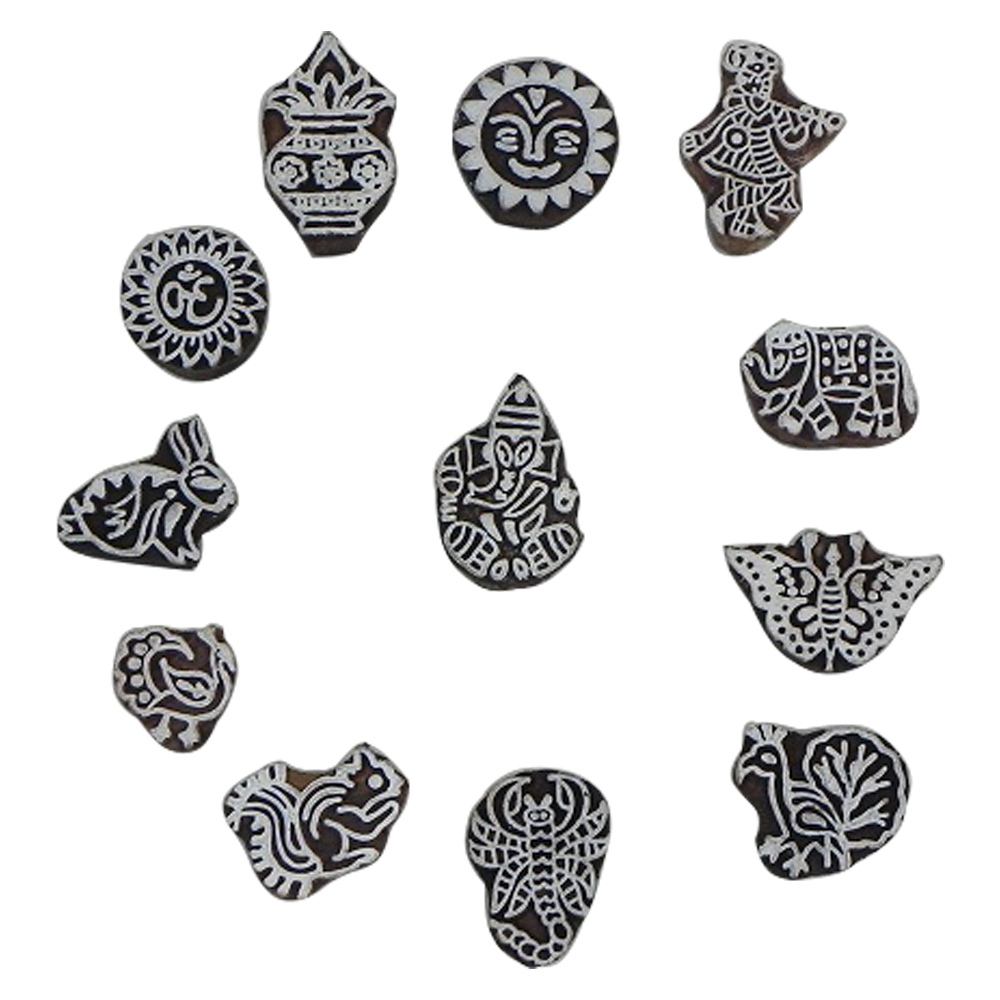 Mixed Printing Block. Ideal for Using on Fabric, Paper, Canvas, etc. These Blocks can be use to Print with Oil Colors, Fabric Colors, Water Colors, Acrylic Colors and Vegetable Colors.