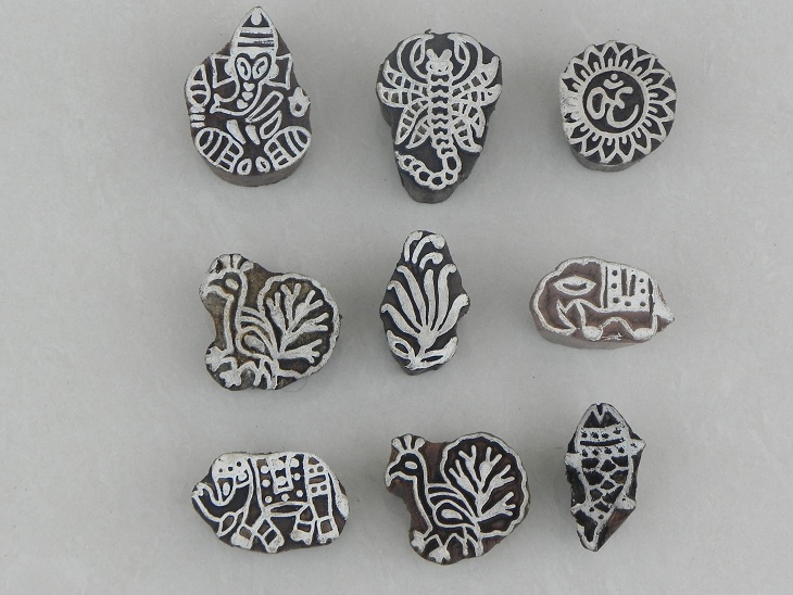 Mixed Printing Block. Ideal for Using on Fabric, Paper, Canvas, etc. These Blocks can be use to Print with Oil Colors, Fabric Colors, Water Colors, Acrylic Colors and Vegetable Colors.