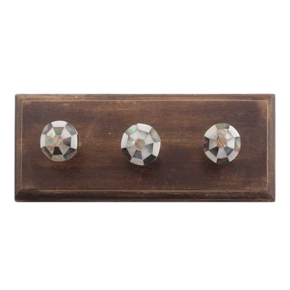 Mixed Shell Football Pattern Wooden Hooks. A Perfect Complement to the Soft Tone of the Wood are these White Traditional Hat and Coat Hook Made of Genuine Porcelain and Brass. It can be used to Hang Jewelry, Leashes, Towels, Scarves, Light Weight Sweaters, Caps etc.