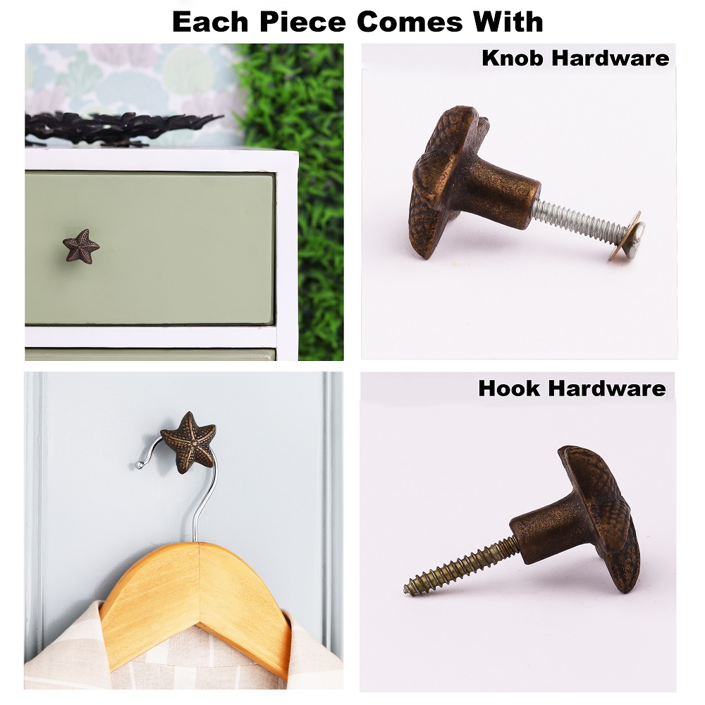 Modern Antique Starfish Iron Wall Hooks-3 Pieces. This Hook is Strong Enough to Hold Your Bags, Hand Towels, Cloths Etc.