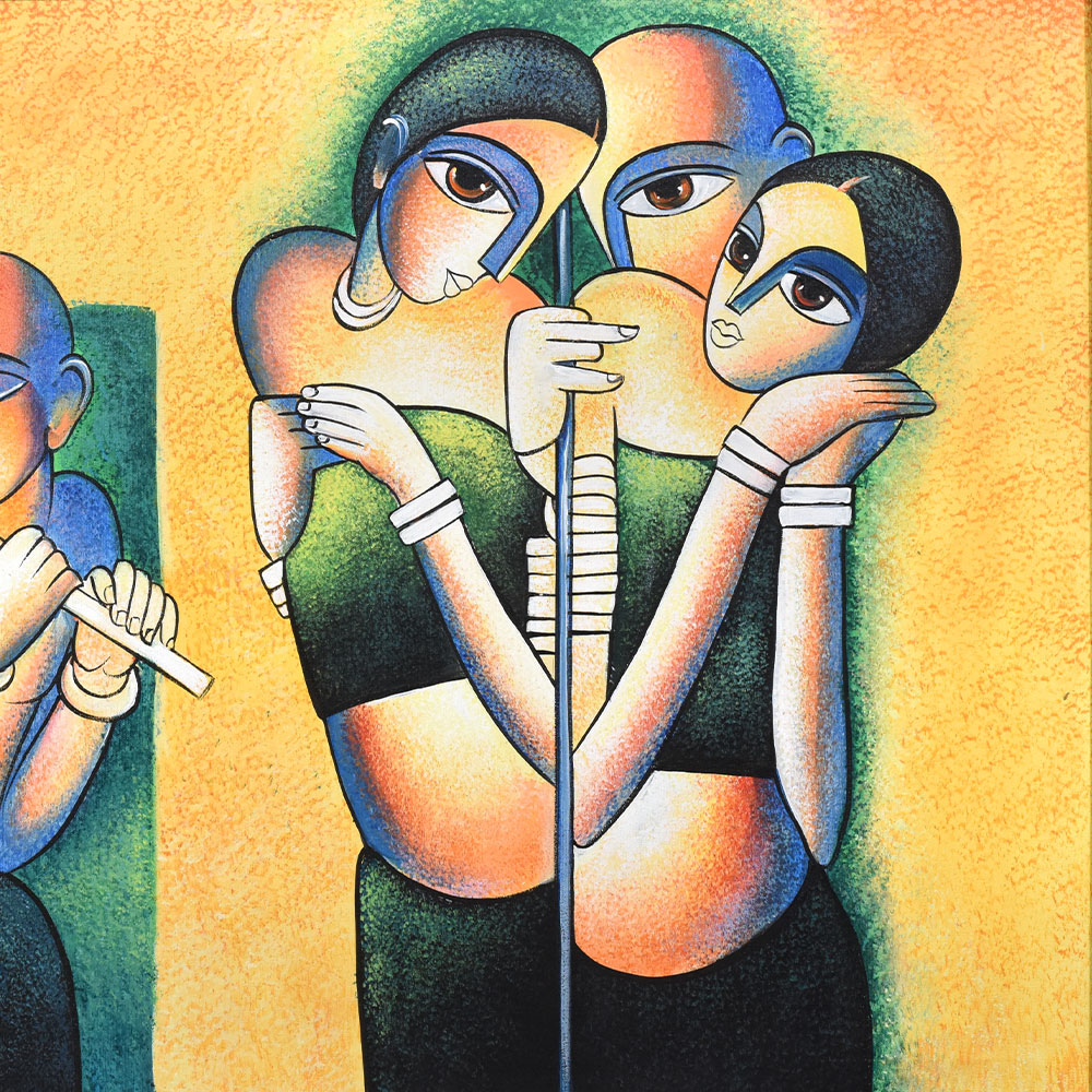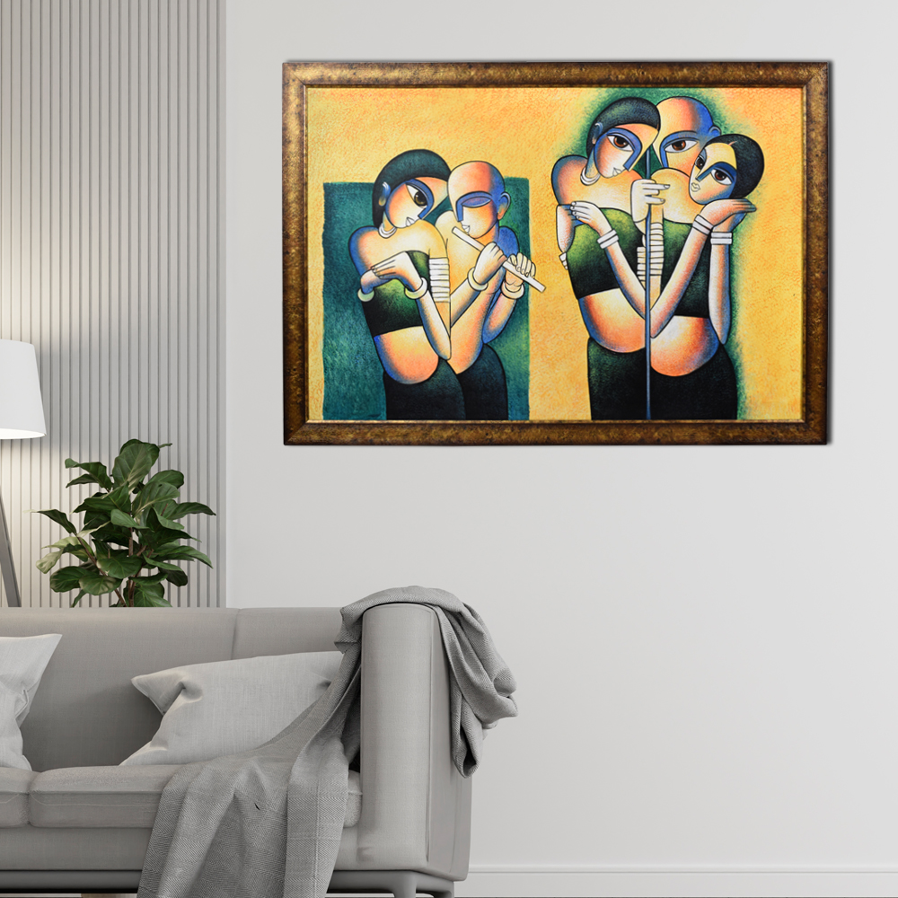 Discover the timeless magic of the divine love story between Radha and Krishna with this stunning modern art canvas painting. Masterfully crafted to blend traditional Hindu iconography with a contemporary aesthetic, this vibrant work of art will transport you to the enchanting realms of ancient India, infusing your surroundings with a sense of spiritual serenity and artistic elegance. This captivating canvas painting is more than just a decorative piece - it's a gateway to a world of enchantment and divine connection. Imagine waking up each morning to the sight of Radha and Krishna, their gentle embrace a constant reminder to embrace the beauty and wonder in your own life. Whether you're a seasoned art enthusiast or simply seeking to infuse your home with a touch of cultural richness, this modern interpretation of the iconic Hindu deities is sure to captivate and inspire.