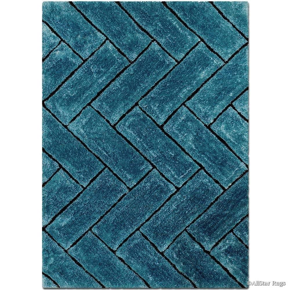 This rug combines a rich blue color palette with soft polyester fibers, offering modern flair and cozy comfort for stylish interiors.