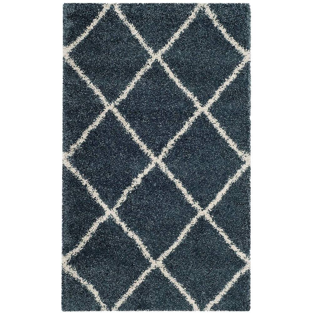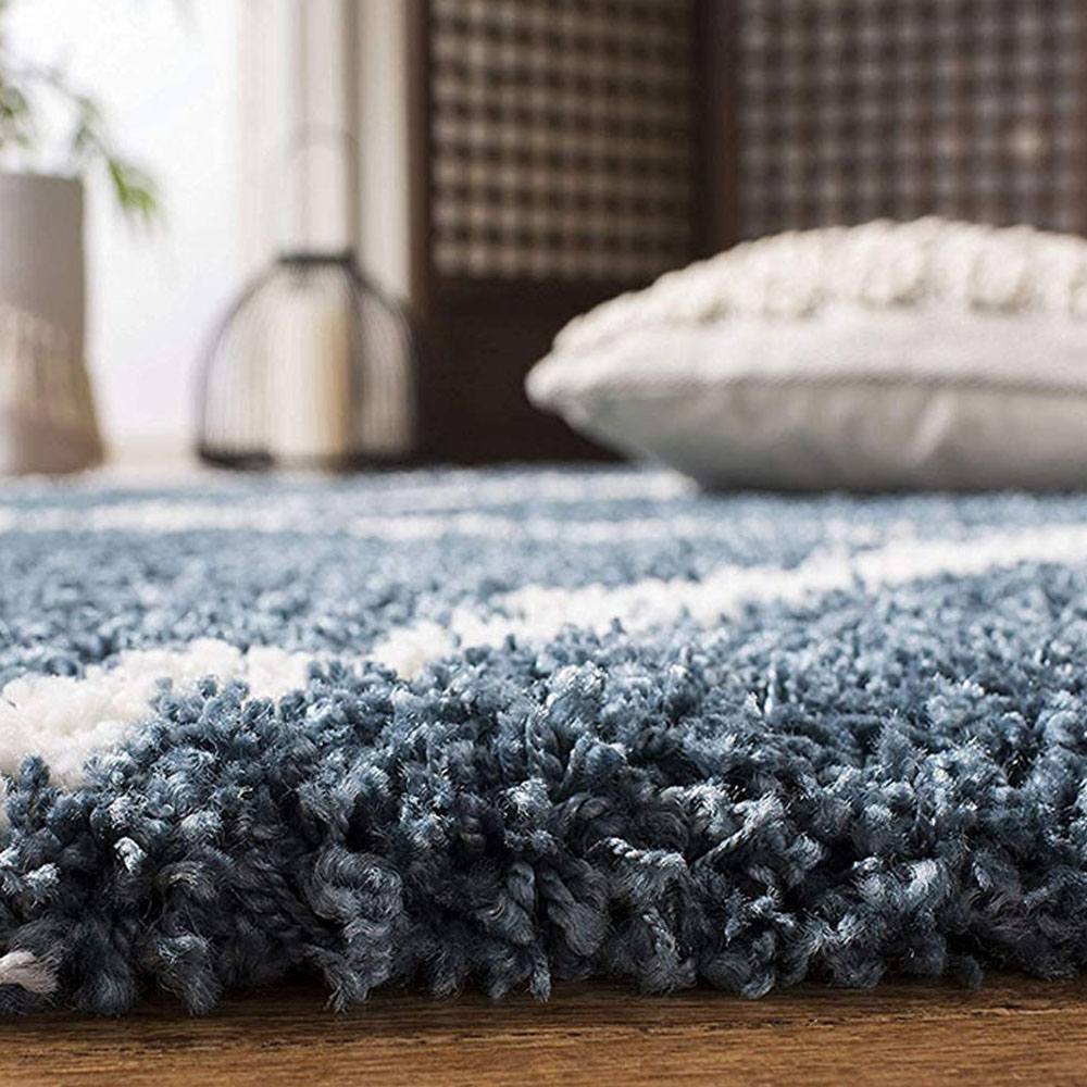 Elevate your interiors with the Blue & Ivory Handmade Microfiber Shaggy Rug, a beautifully handwoven piece that combines comfort with timeless elegance. Featuring a plush texture and a stylish ivory diamond pattern over a soothing blue base, this rug is entirely handmade by skilled artisans to add warmth and sophistication to any space.