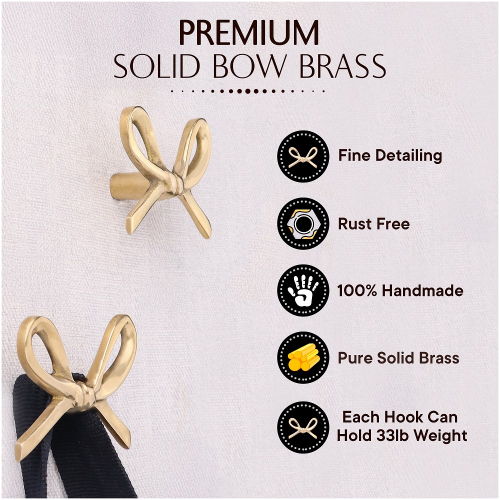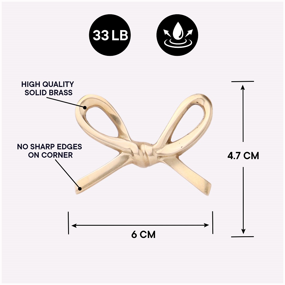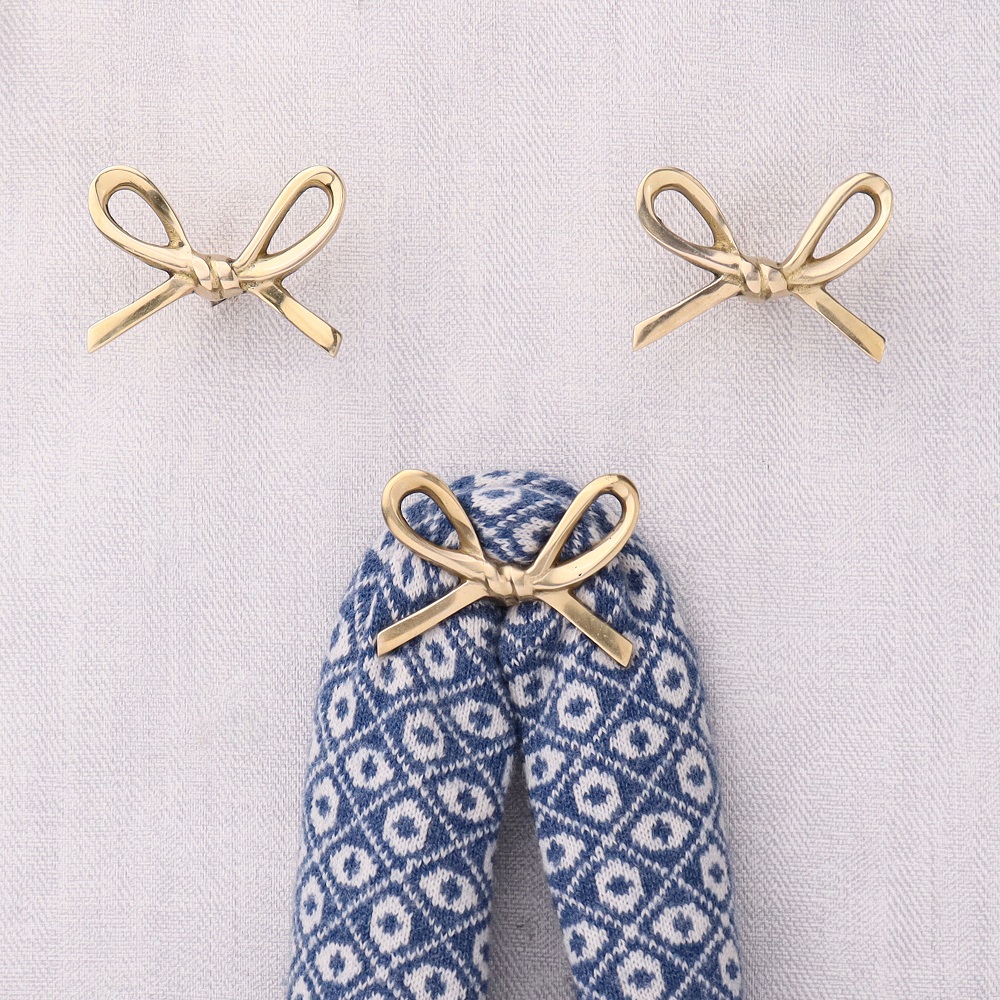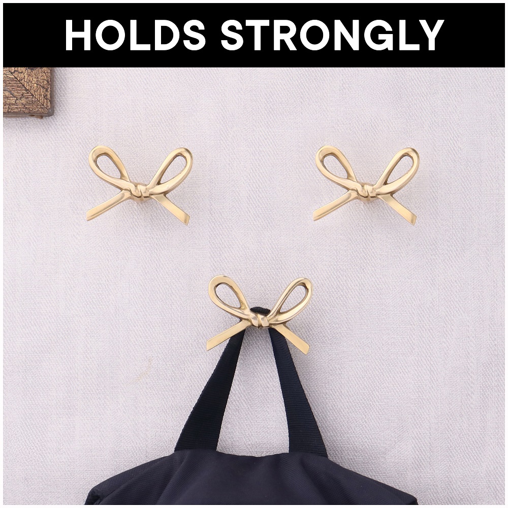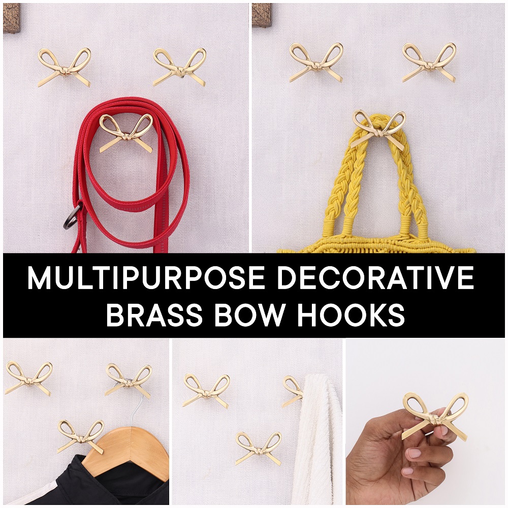 Handmade Modern Brass Golden Bow Wall Hooks Set of 3. This Hook is Strong Enough to Hold Your Cloths, Keys, Tea Cups, Coffee Mugs, Hand Towels Etc.