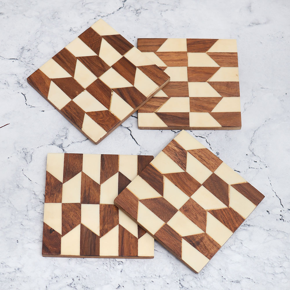 Made from high-quality wood, these coasters are built to last. The modern brown and white patterns are meticulously crafted to enhance the natural beauty of the wood while protecting your surfaces from watermarks and stains.