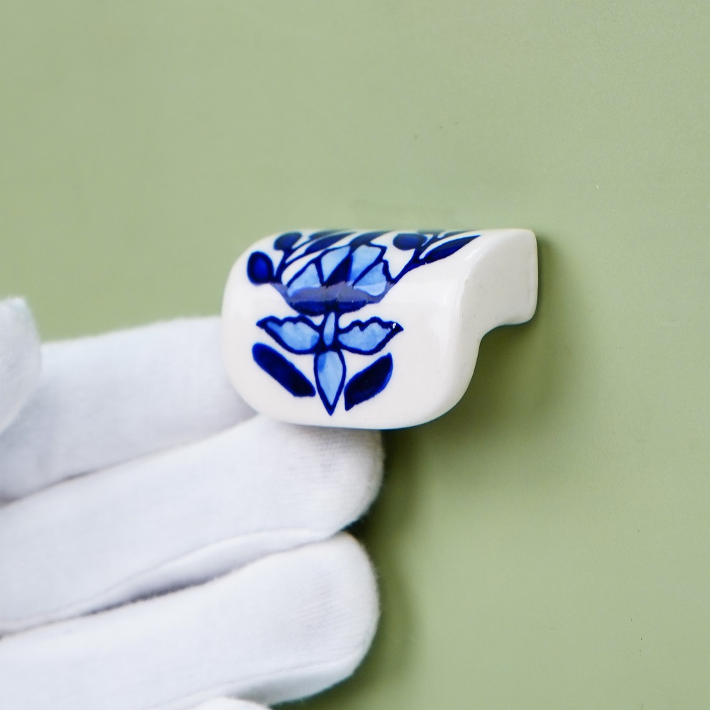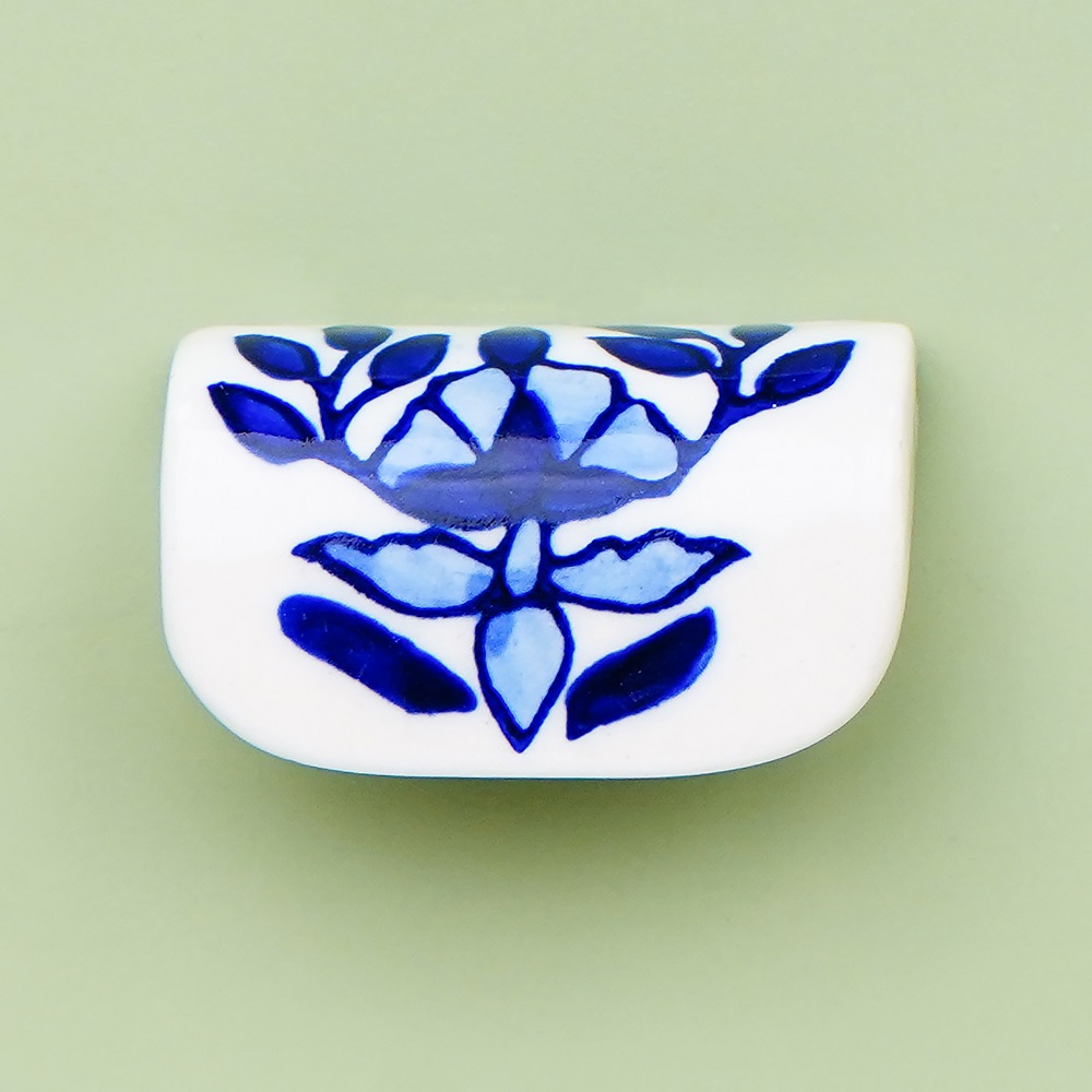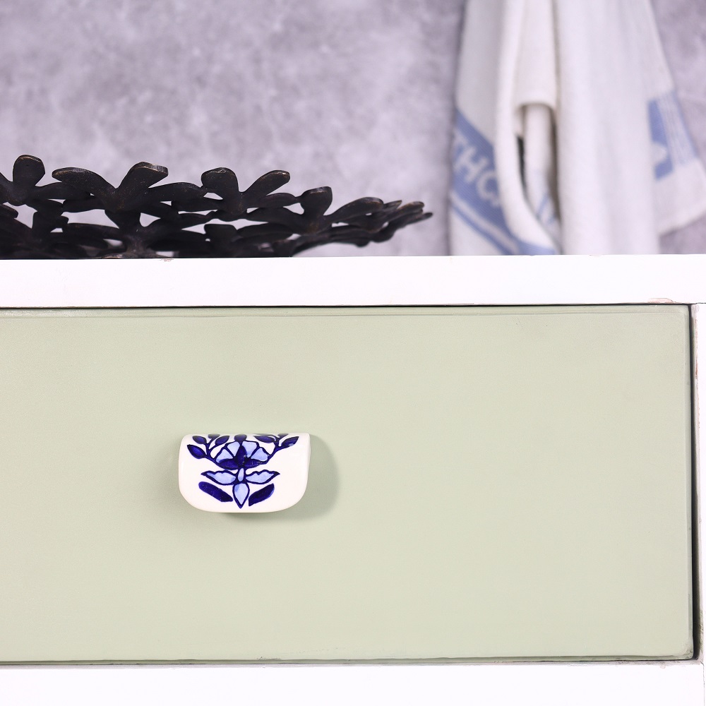 Blue Leaf Floral Ceramic Drawer Handle (Small Size). Ideal for Drawer, Dresser, Cabinet, Wardrobe, Cupboard and Almirah.