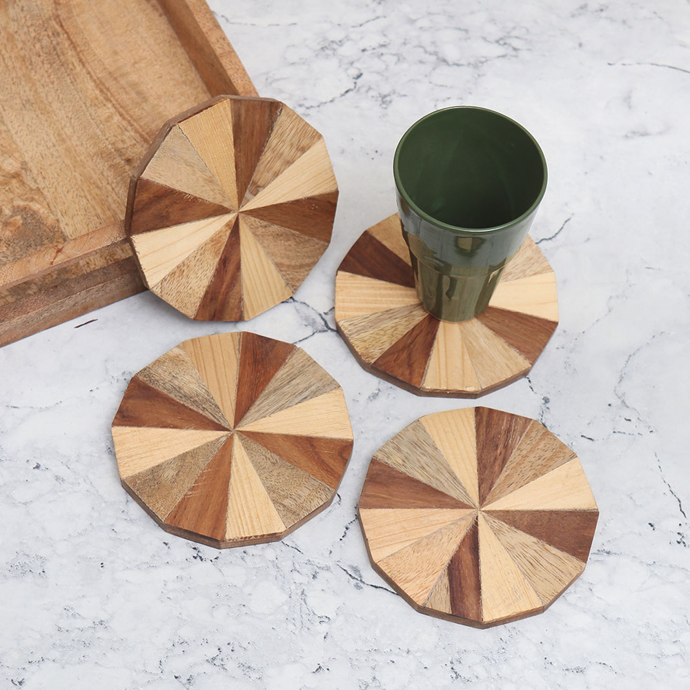 These coasters are made from eco-friendly wood that is responsibly sourced, making them an excellent choice for those looking to reduce their environmental impact. The natural, sustainable material adds to the overall appeal of the product, and the timeless design ensures that they will remain a stylish and functional accessory in your home or office for years to come.