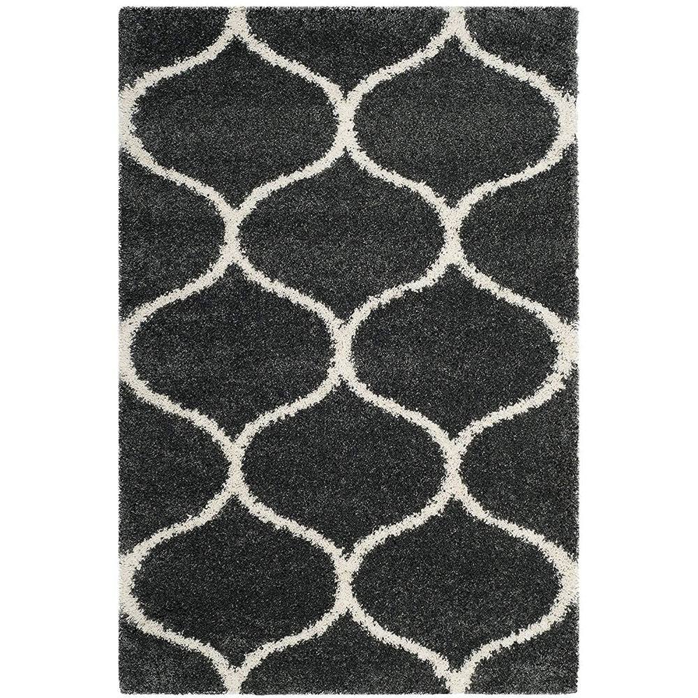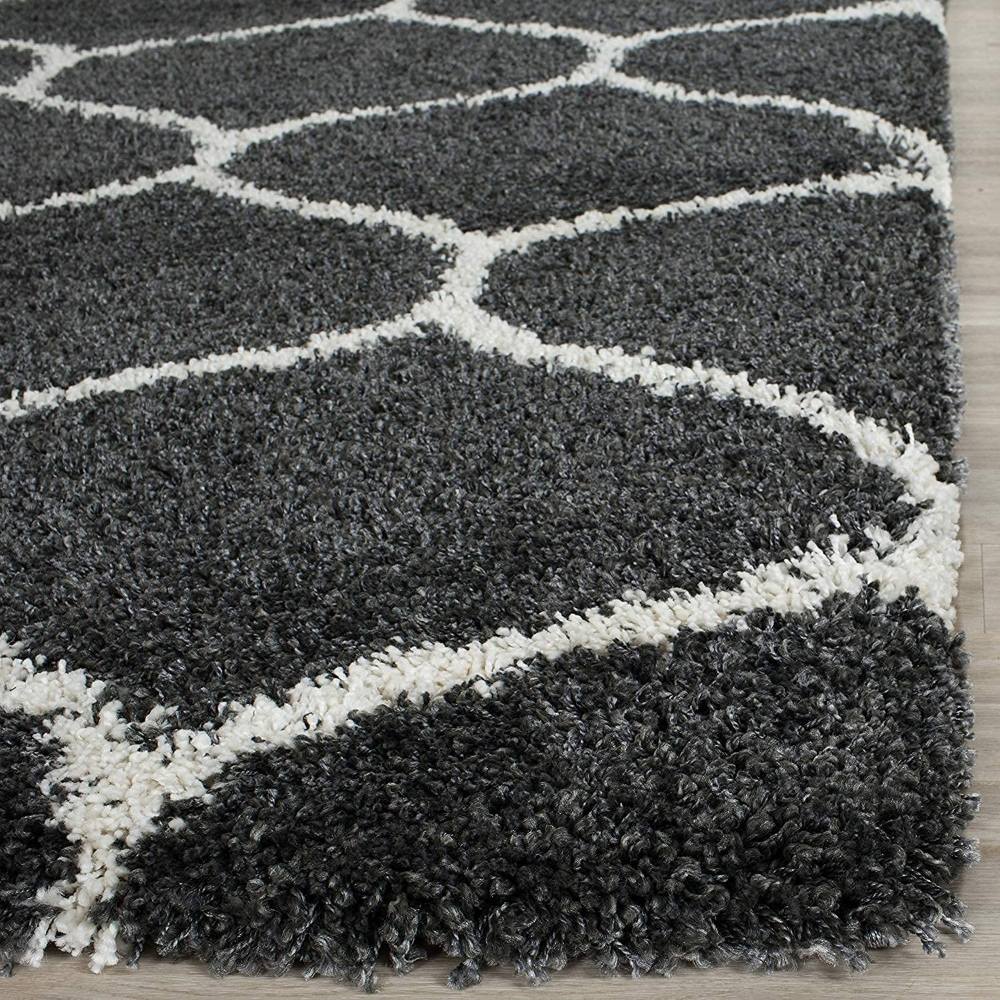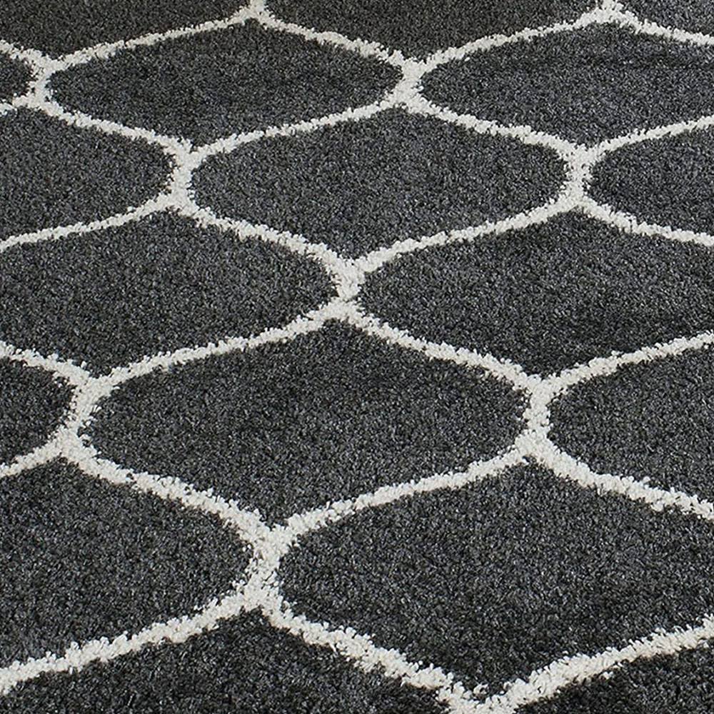 Redefine your home décor with this Dark Grey & Ivory Microfiber Shaggy Carpet, featuring an elegant Moroccan-inspired trellis design. Its plush texture and bold color contrast make it a versatile choice for living rooms, bedrooms, and lounges. Packed & quality-checked by Indianshelf.