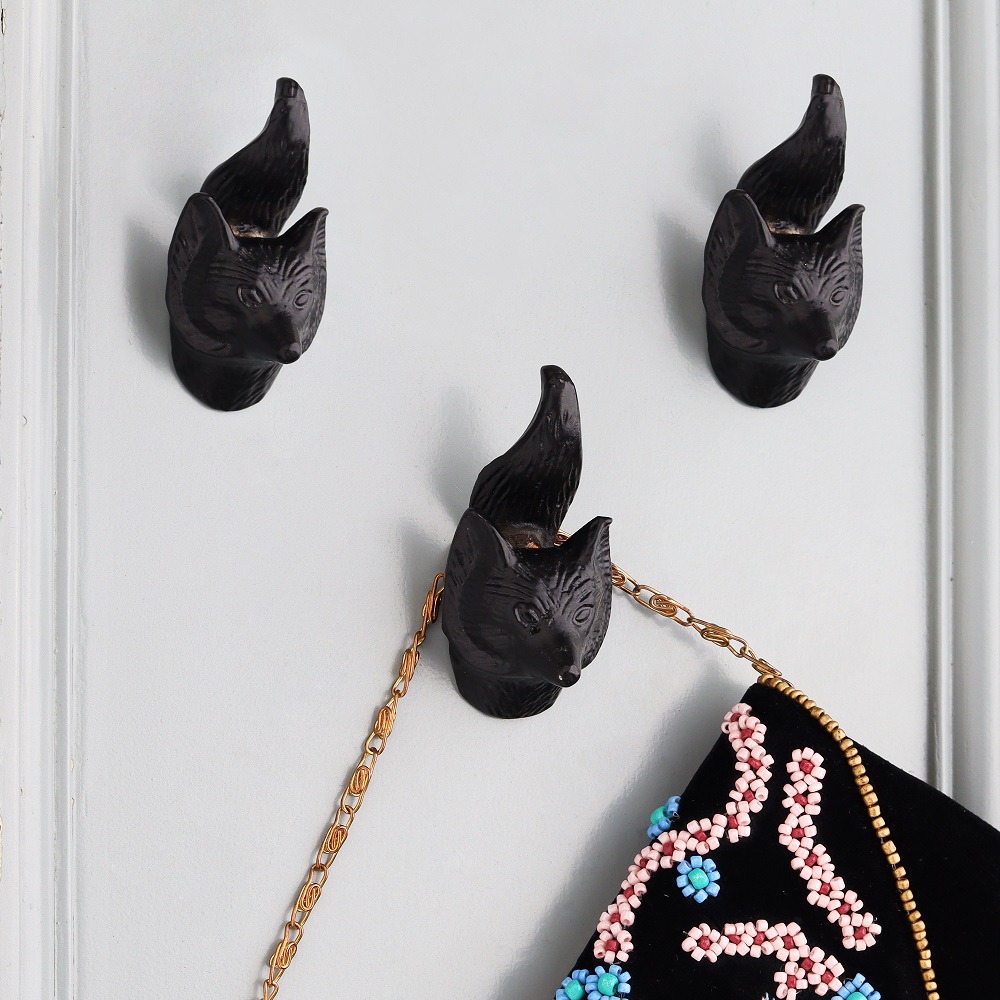 Modern Antique Black Fox Face Iron Wall Hook in Set of 3. This Hook is Strong Enough to Hold Your Bags, Hand Towels, Cloths Etc.