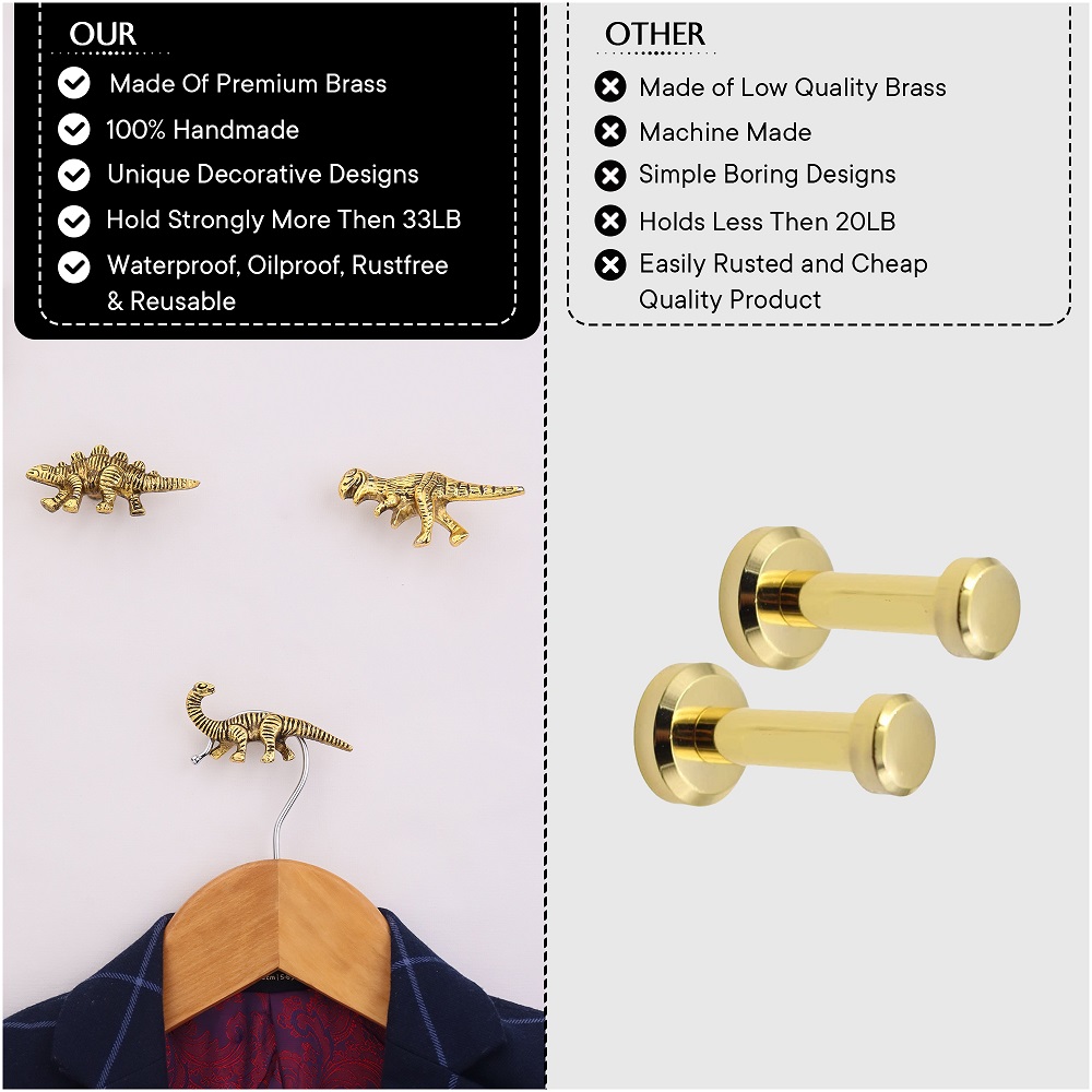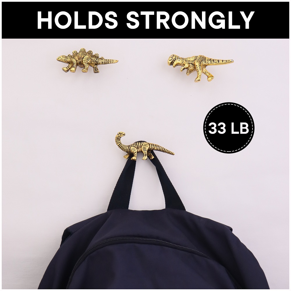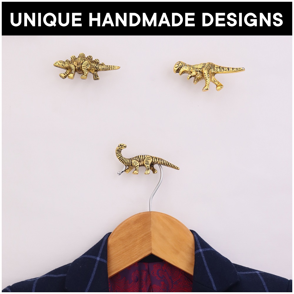 Modern Dinosaur Aluminium Golden Heavy Duty Wall Hooks-Pack of 3. This Hook is Strong Enough to Hold Your Bags, Hand Towels, Cloths Etc.