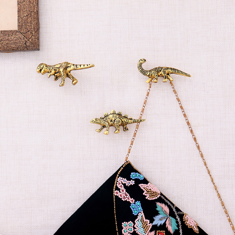 Add a golden touch of playfulness and modern charm to your walls with the Modern Dinosaur Aluminium Golden Heavy Duty Wall Hooks (Pack of 3). These eye-catching hooks are meticulously crafted from lightweight yet durable aluminium, finished in a luxe golden hue that instantly elevates any space. Designed to combine quirky dinosaur shapes with sleek metallic elegance, they serve as both practical storage solutions and standout décor pieces. Perfect for anyone who loves design that doesn’t take itself too seriously—but still gets the job done.