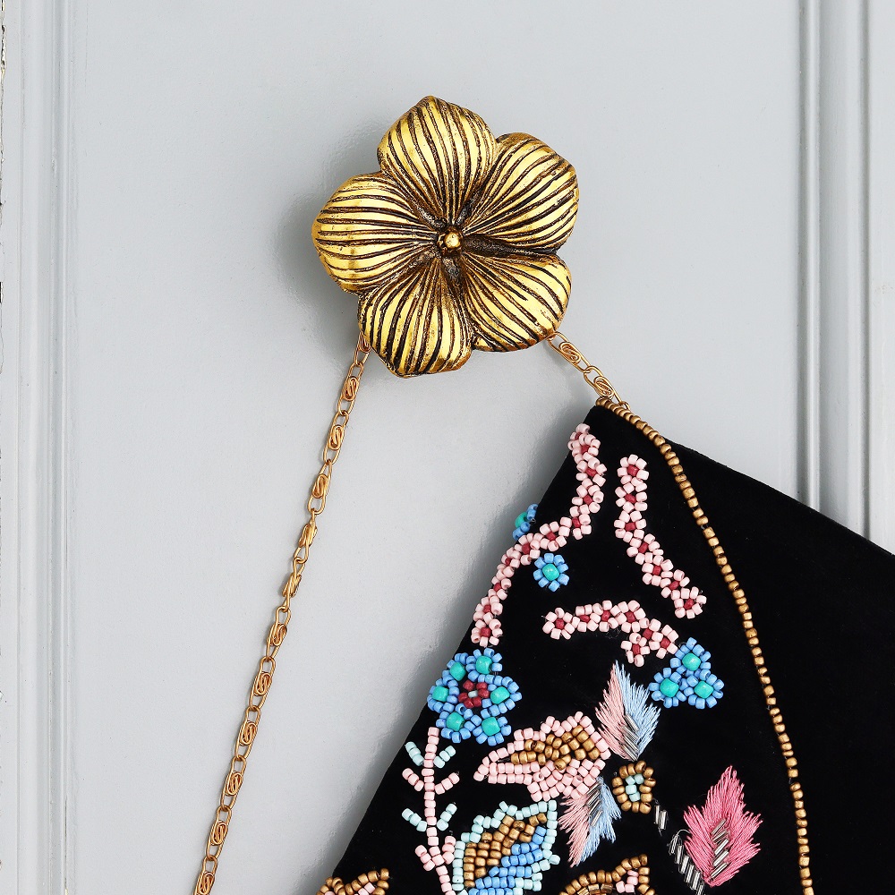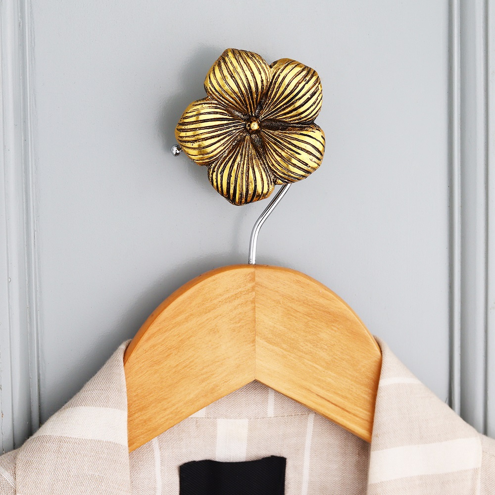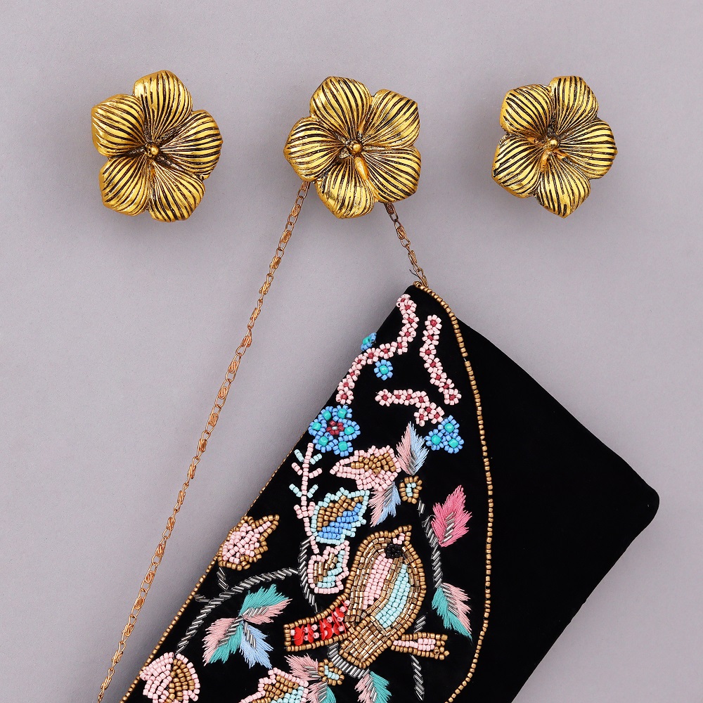 Golden Modern Flower Aluminum Wall Hooks 3 Pieces. This Hook is Strong Enough to Hold Your Bags, Hand Towels, Cloths Etc.