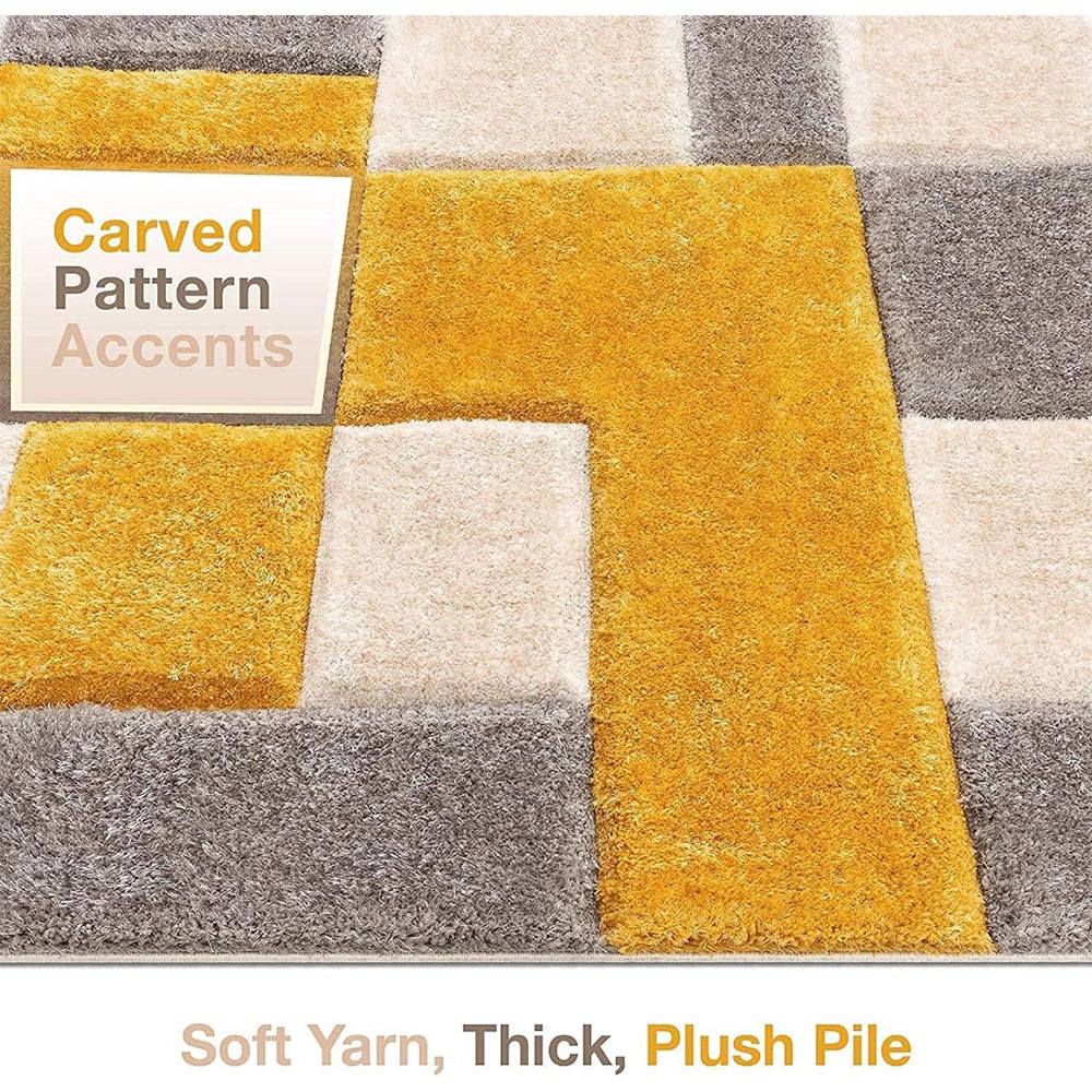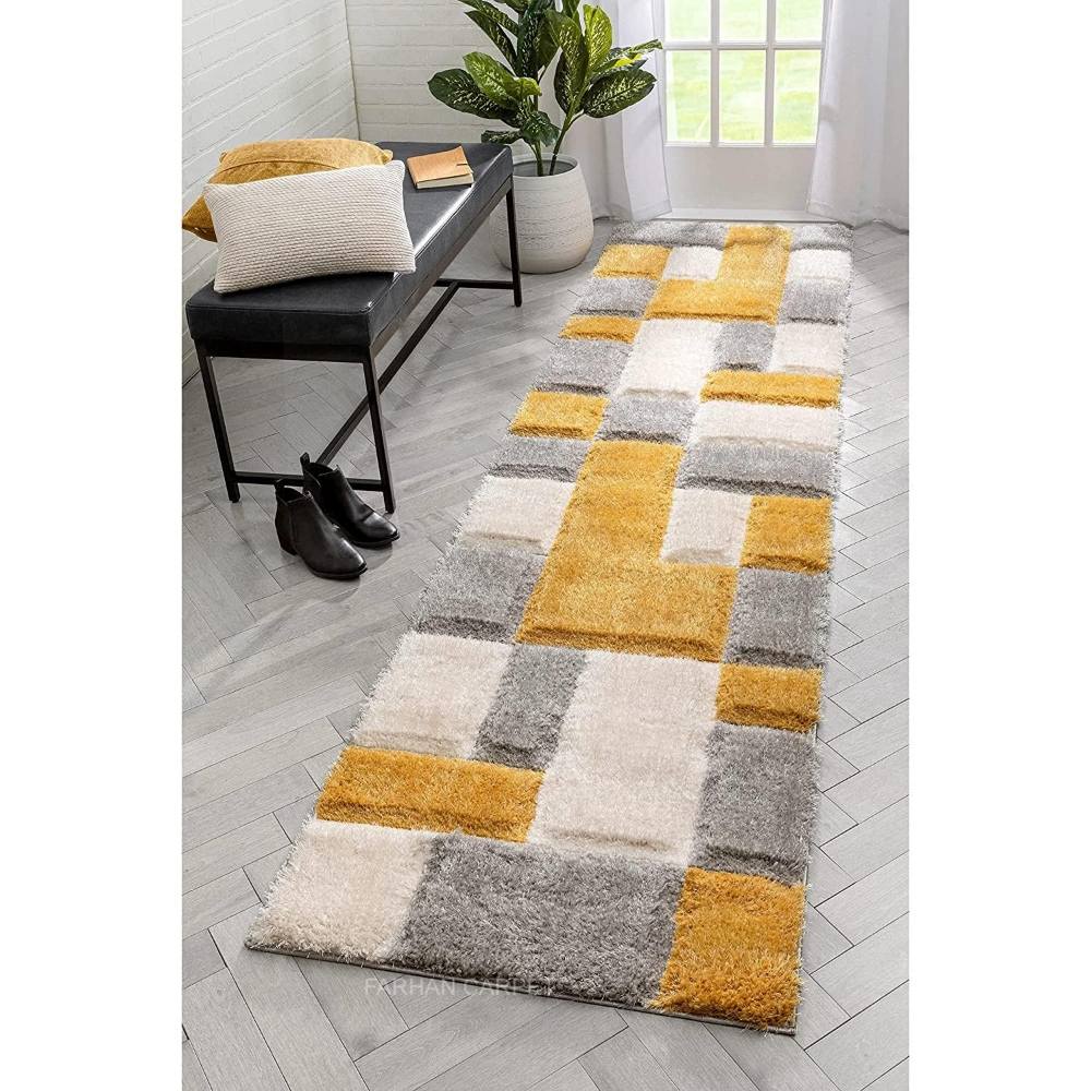 Enhance your home décor with this Ivory, Gold & Silver polyester shaggy rug featuring a bold block design. Its soft pile and shimmering tones create a luxurious feel, making it ideal for living rooms, bedrooms, or boutique displays. Packed & quality-checked by Indianshelf.