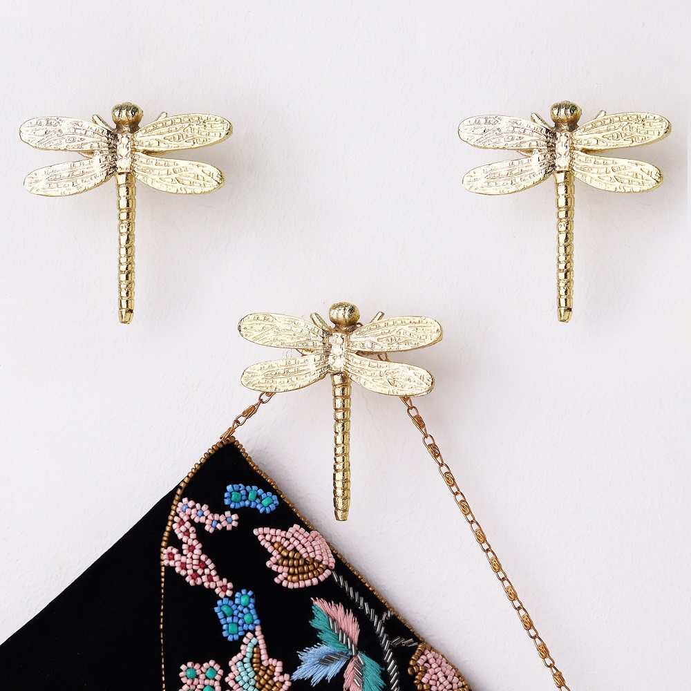 Bring a touch of nature-inspired beauty to your home with our stunning metal dragonfly wall hooks. Crafted with meticulous attention to detail, these charming hooks are the perfect way to add a whimsical, eye-catching accent to any space. Elevate your entryway, hallway, or any room with the graceful presence of these dragonfly wall hooks. The delicate, nature-inspired design brings a sense of wonder and tranquility, while the sturdy metal construction ensures long-lasting durability. Whether you're looking to organize your everyday essentials or simply want to add a decorative touch to your home, this set of three dragonfly hooks is the perfect solution. Imagine the joy of coming home and being greeted by these captivating creatures, ready to hold your belongings with care. Transform your space into a serene oasis with the addition of these enchanting wall hooks.