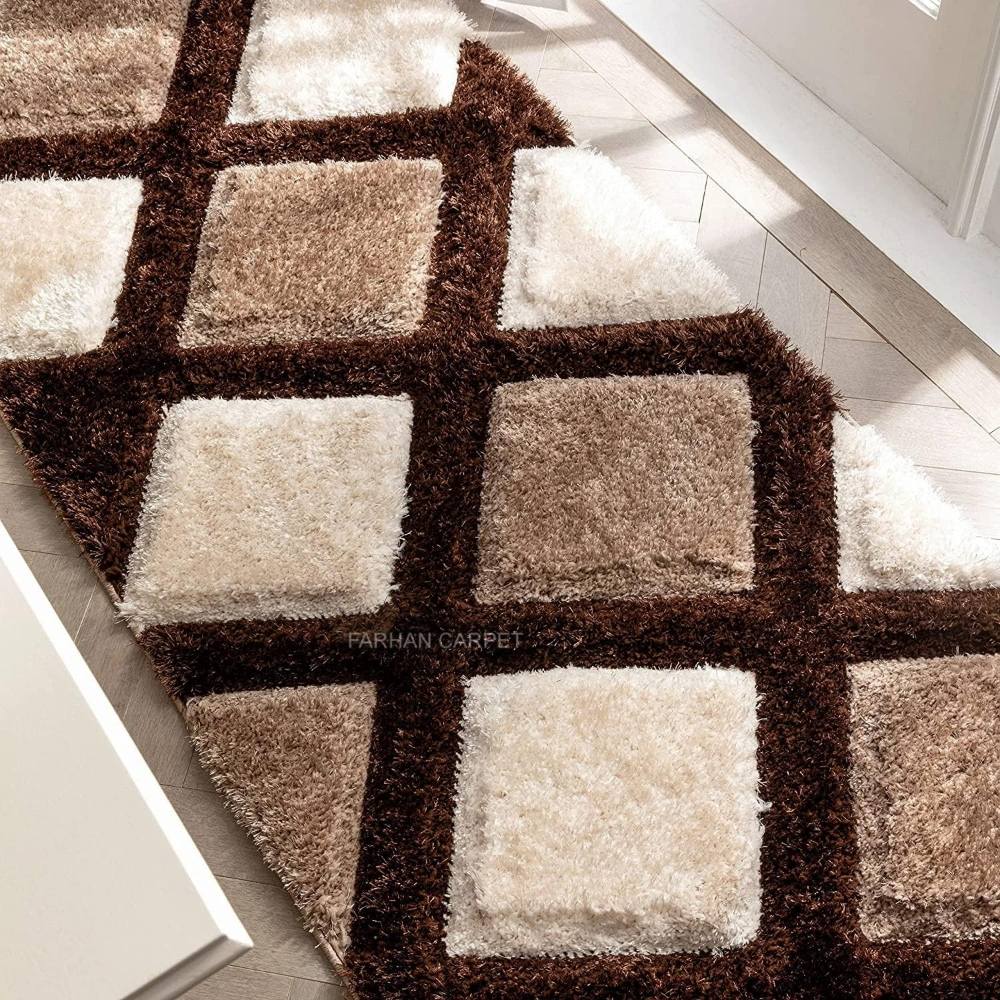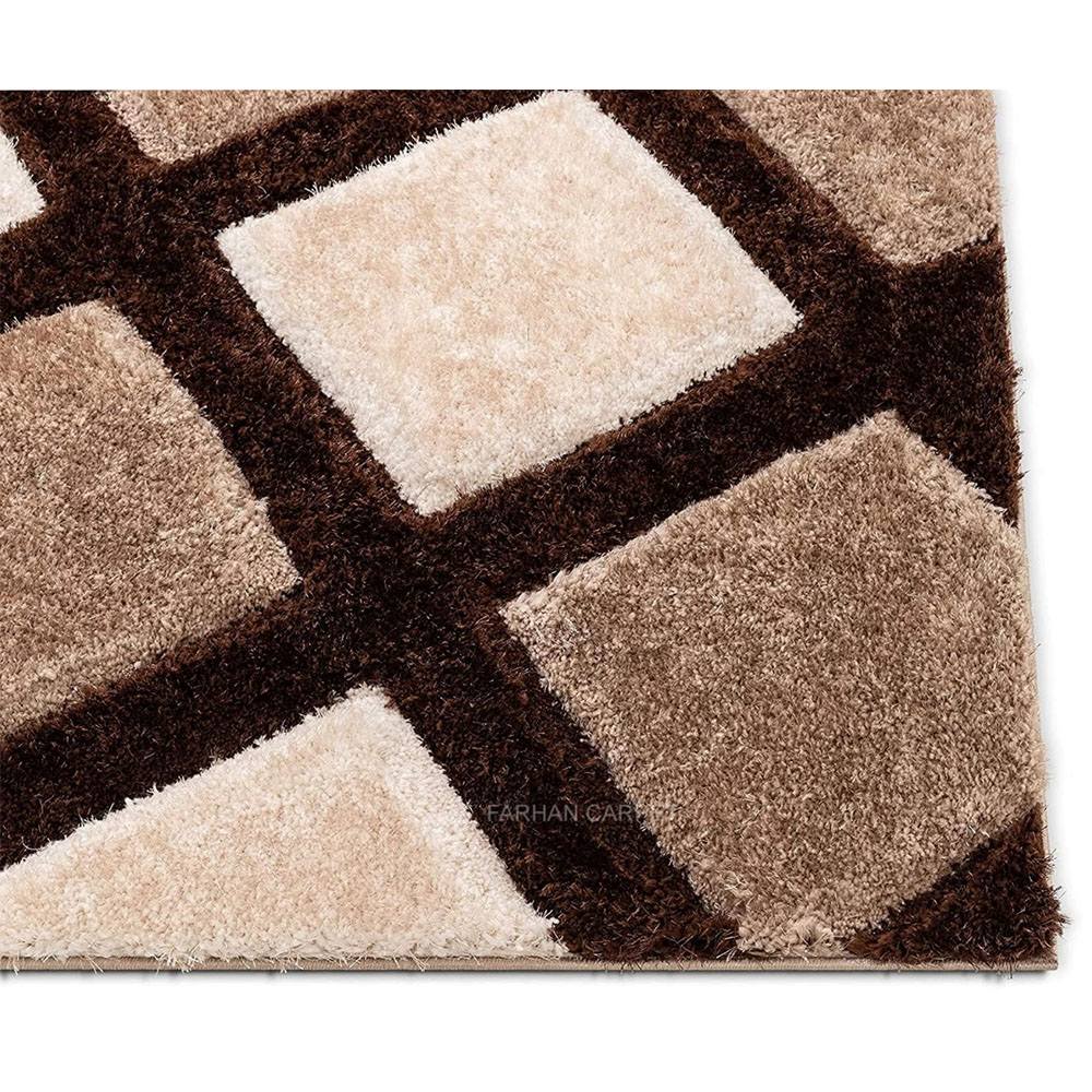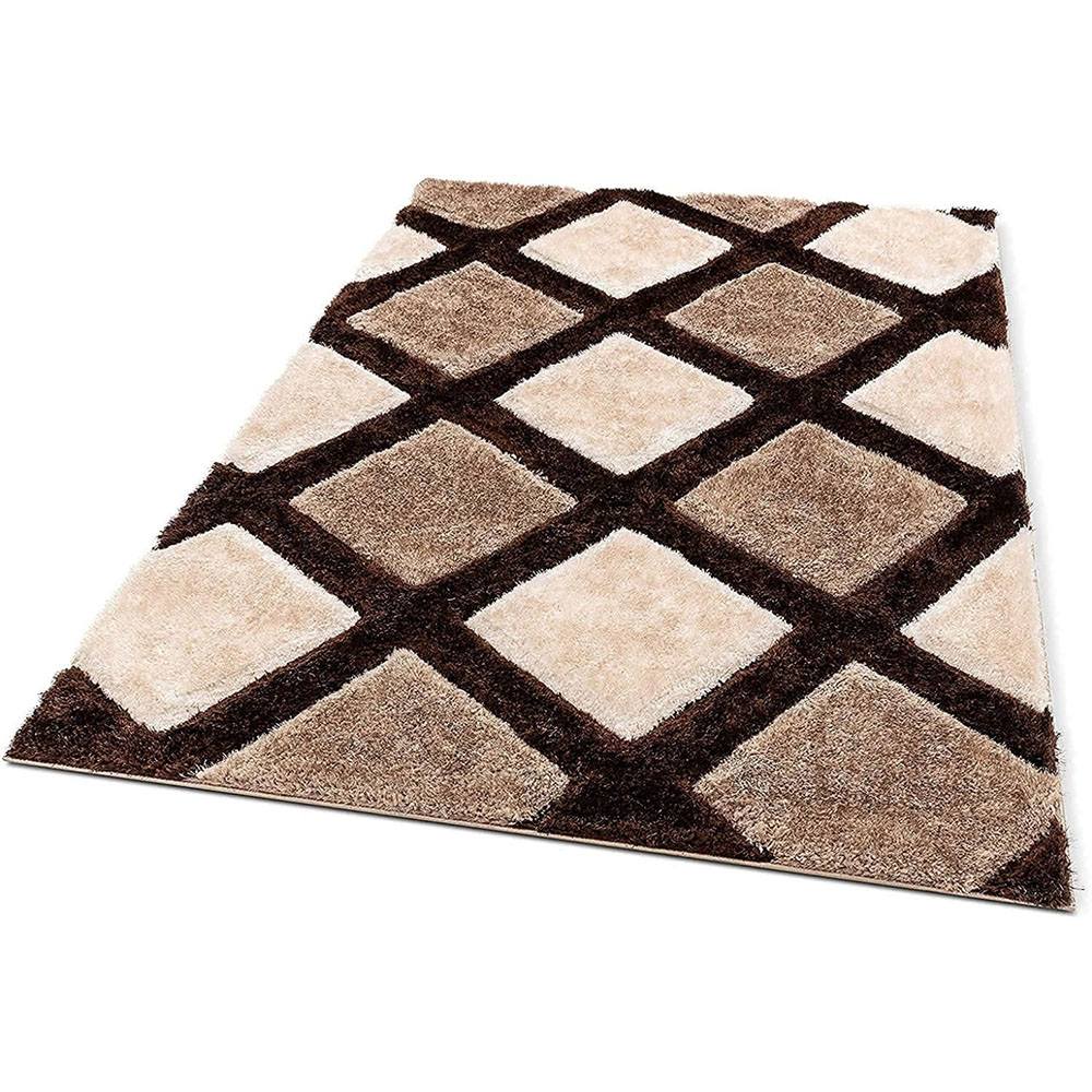 Add sophistication to your interiors with this Brown, Beige & Cream Polyester Carpet. Its geometric diamond pattern enhances modern living rooms, bedrooms, or lounge spaces with both comfort and style. Crafted with a plush finish, it balances durability with a refined aesthetic. Packed & quality-checked by Indianshelf.