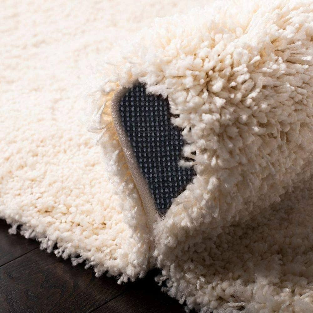 This rug offers a plush feel underfoot with a calming ivory tone, creating a serene and inviting ambiance.