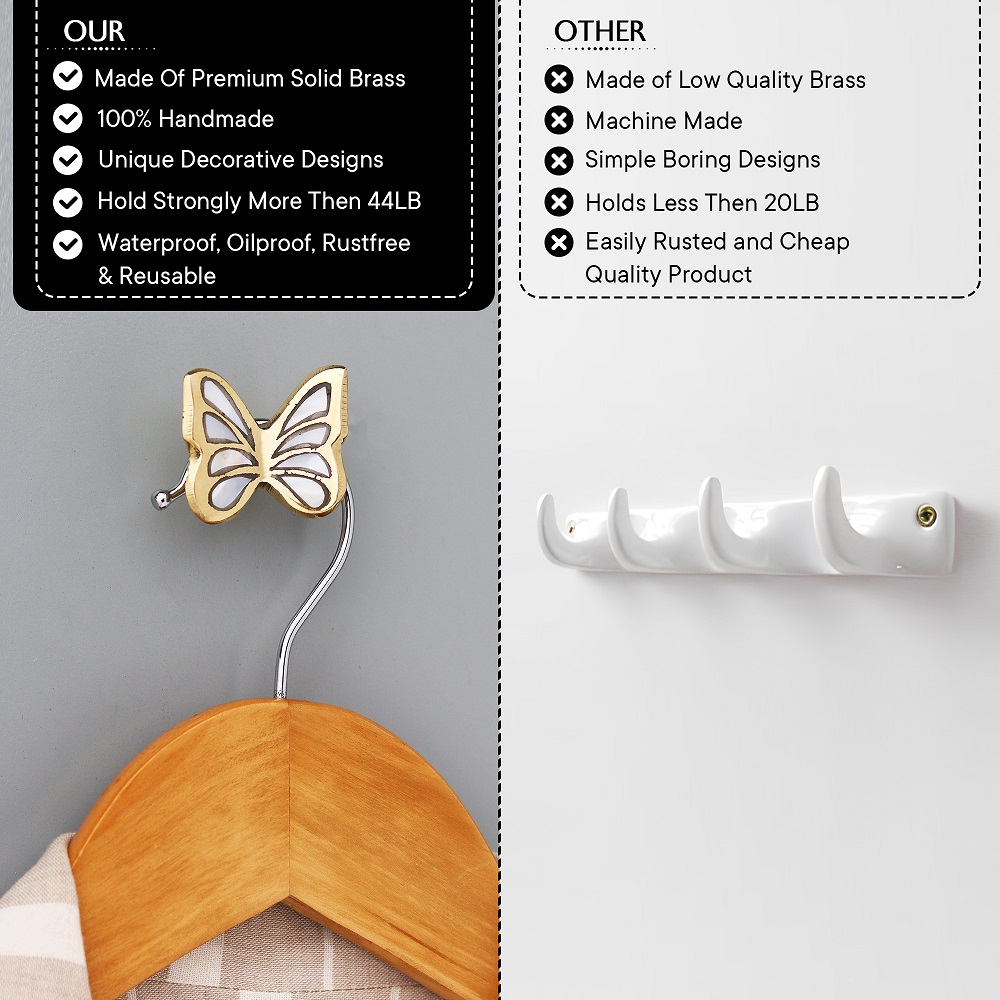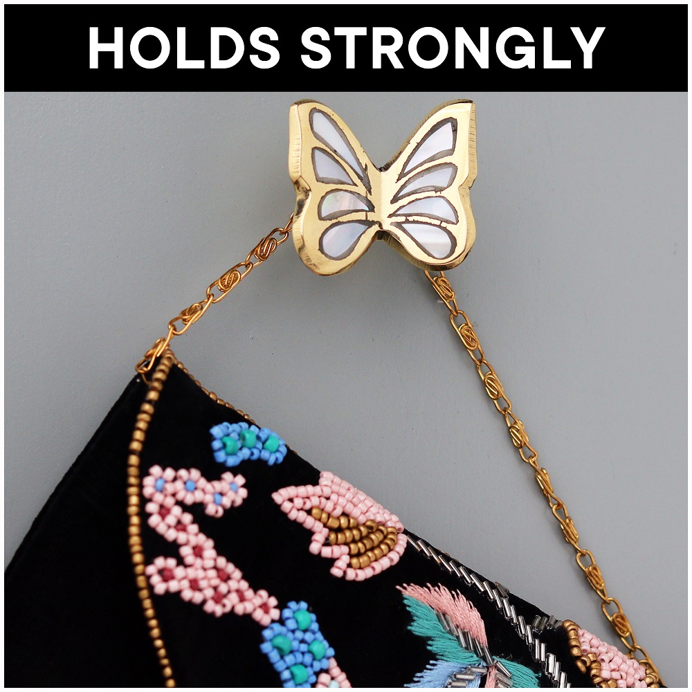 Bring a sense of ethereal beauty to your home with our captivating Butterfly Wall Hook. Meticulously crafted from premium mother of pearl and brass, this exquisite piece seamlessly blends form and function. The delicate butterfly silhouette adds a touch of elegance, while the robust hook provides reliable storage for your everyday essentials. Whether you're looking to enhance your entryway, bedroom, or bathroom, this versatile wall hook effortlessly elevates your space. Hang coats, bags, towels, or scarves with ease, all while enjoying the enchanting ambiance it creates. With its high-quality construction and timeless aesthetic, the Butterfly Wall Hook is a must-have accessory that will elevate your décor for years to come.