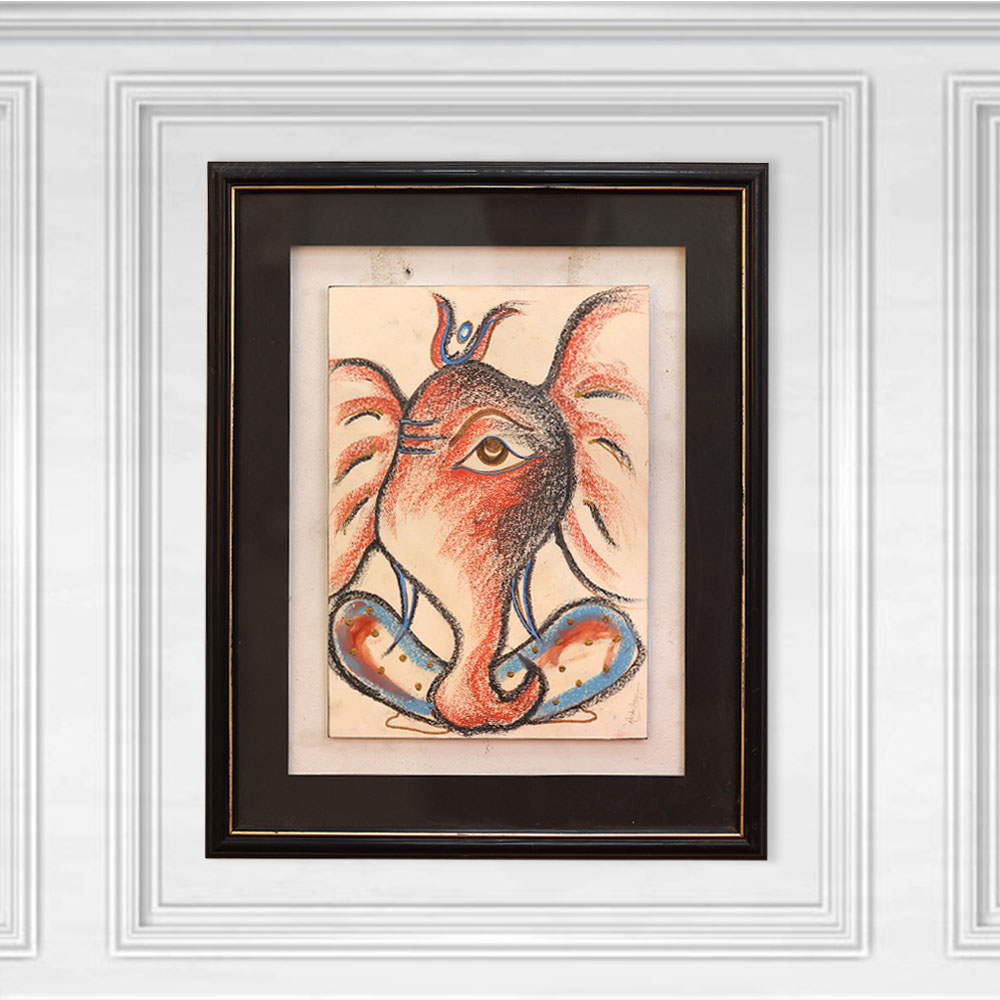 Bring the blessings of Lord Ganesha into your home or office with this stunning modern paper painting. Bursting with vivid hues and abstract flair, this one-of-a-kind framed artwork commands attention while honoring the sacred symbolism of the beloved elephant-headed deity. The intricate paper painting technique lends remarkable depth and texture, making this piece a true masterpiece. Whether you're a devoted Hindu or simply appreciate fine art with a modern twist, this Ganesha painting is a captivating addition to any space. Display this artwork proudly as a reminder to remove obstacles, gain wisdom, and celebrate new beginnings. Let the presence of Ganesha fill your surroundings and inspire you daily, guiding you towards success, prosperity, and fulfillment in all areas of your life.