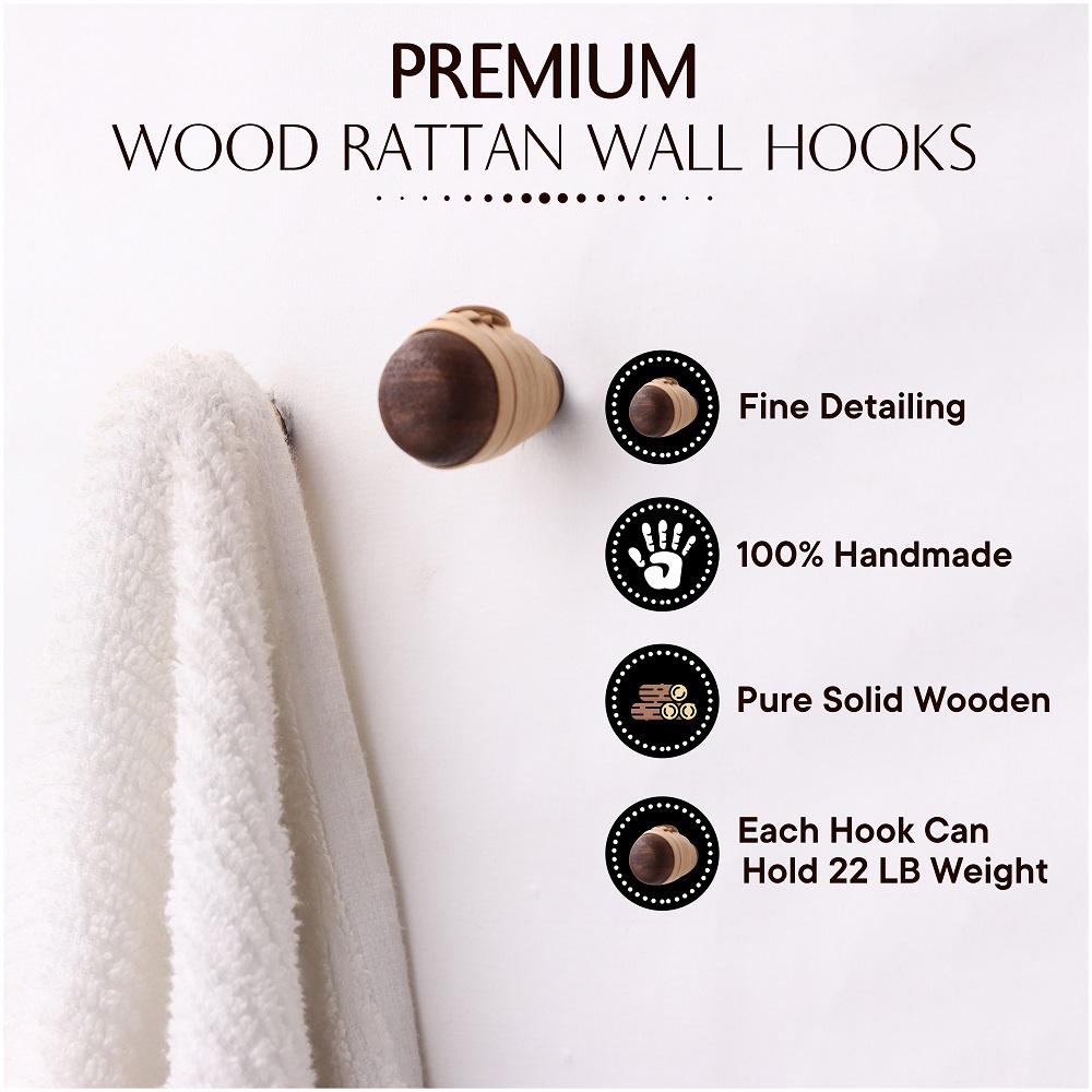 Modern Rattan Natural Wall Hooks is perfect for hanging towels, clothes, hats, bags, keys, scarves and jackets.